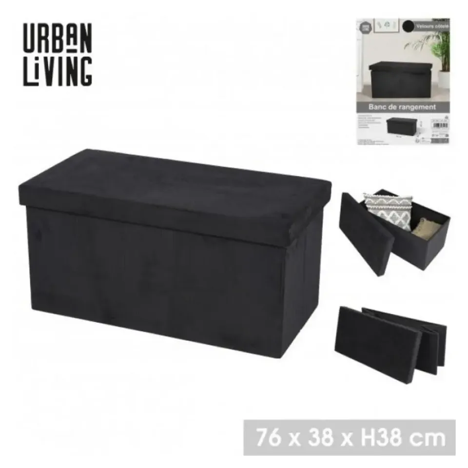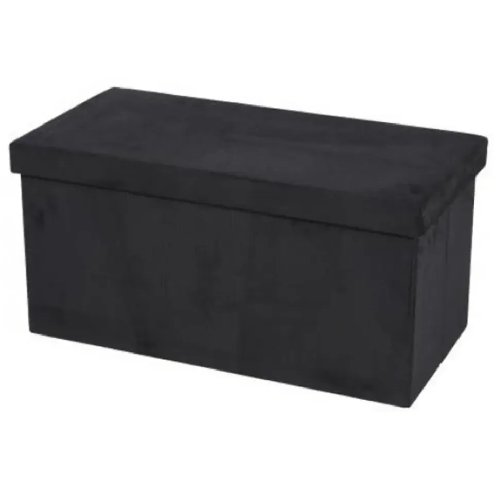 Hocker bankje poef velours look met opbergruimte waar je ook op kan zitten. Deze opvouwbare poef, ook wel een hocker genoemd is ideaal voor elk huishouden. De poef heeft een afneembare deksel, geeft je extra opbergruimte en is tevens te gebruiken als voetenbankje. Bespaar ruimte door bijvoorbeeld speelgoed of dekens erin op te bergen of de poef als zitplaats te gebruiken. Een mooie aanvulling voor in huis. Kleur: zwart. Materiaal: polyester en mdf. Afmeting: ca. 76 x 38 x 38 cm. Makkelijk weer in te klappen en weg te leggen.