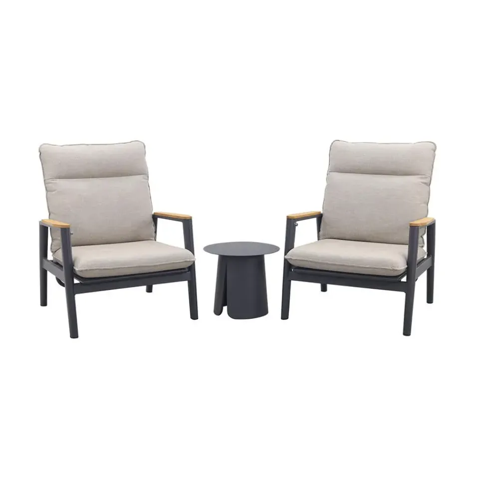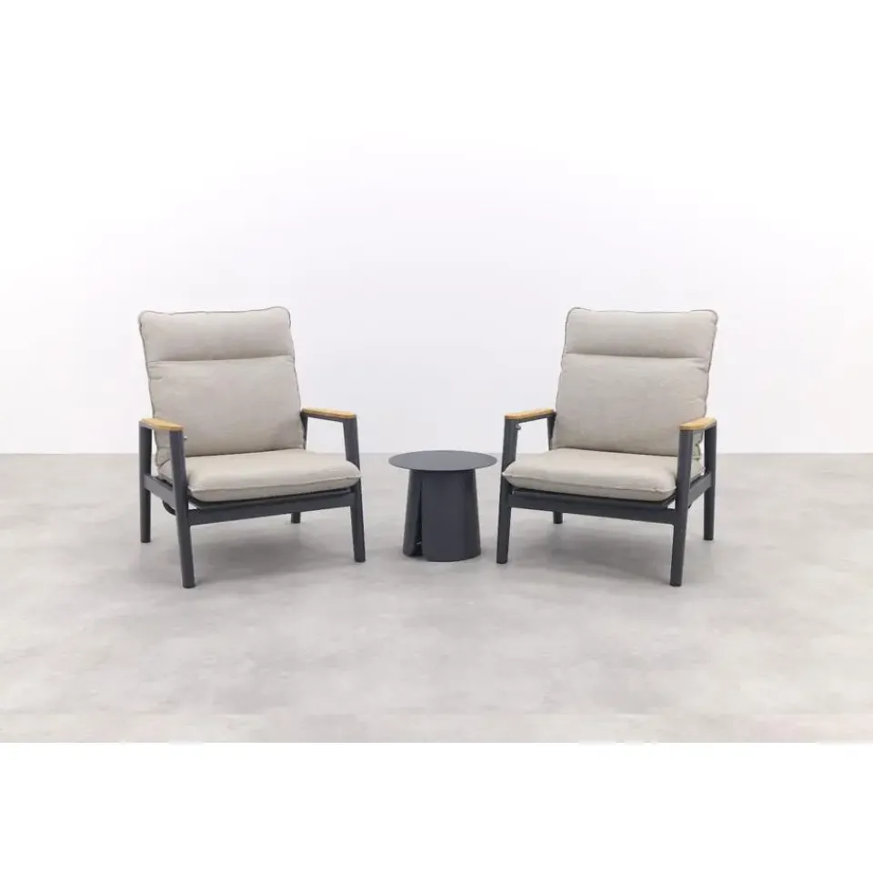 Creëer de perfecte loungehoek met de Solaro loungestoelen en de Velora bijzettafel Ø45 cm in royal grey! Zak lekker achterover in de comfortabele Solaro stoelen, ideaal om te ontspannen. De compacte Velora bijzettafel biedt altijd een handig plekje voor je drankje en is dankzij het lichte aluminium makkelijk te verplaatsen.De combinatie van tijdloos design en duurzame materialen maakt deze set een aanwinst voor iedere tuin of terras. Bestel nu en geniet jarenlang van deze stijlvolle en praktische set.