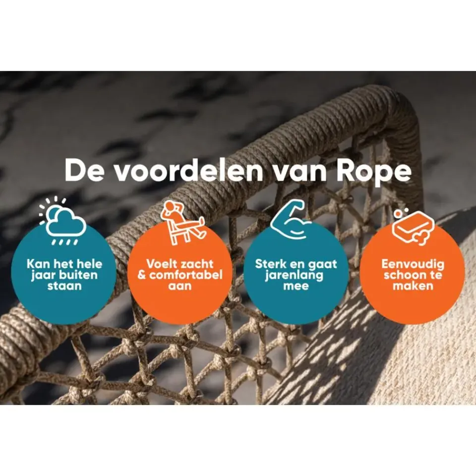 De Solaro loungestoelen zijn perfect om heerlijk in te ontspannen. Het frame is gemaakt vanlichtgewicht aluminiumin een stoere antracietkleur –helemaal weerbestendig, dus ideaal voor buiten! De teakhouten armleuningen geven eengezellige, landelijke uitstraling, terwijl de rugleuning met rope-design zorgt voor eenspeels en stijlvoldetail. De dikke,comfortabele kussenszijnbestand tegen een buitjeen hebben een prachtige zandkleur die overal bij past.