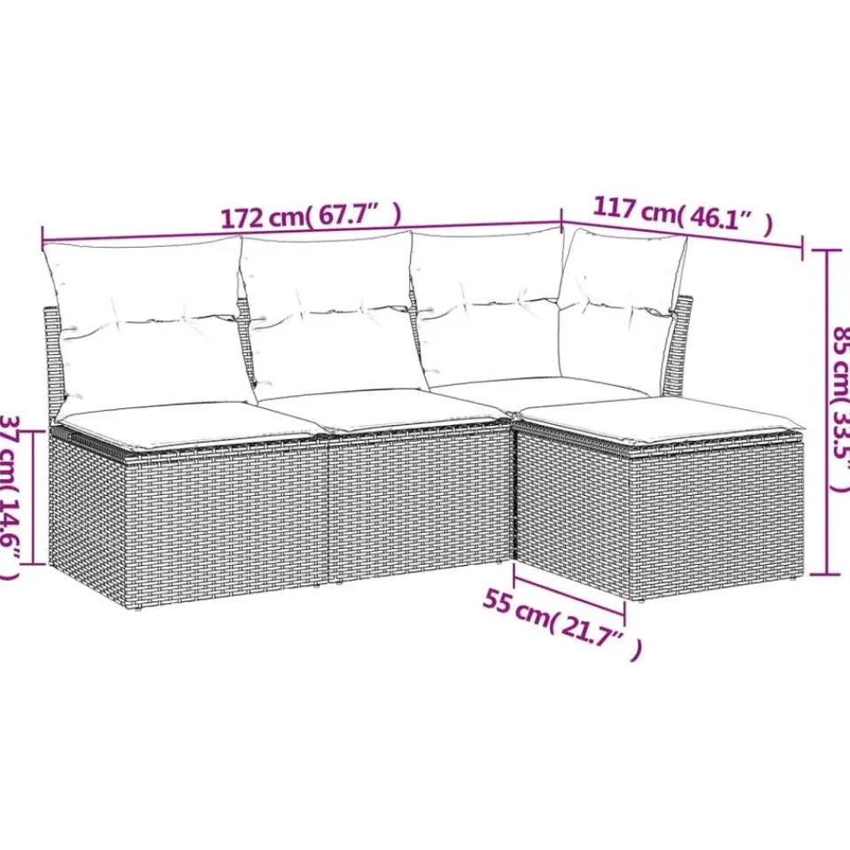 Deze loungeset is de perfecte aanvulling op je tuin of terras en biedt een comfortabele en uitnodigende ruimte om met familie en vrienden te kletsen of gewoon buiten te ontspannen en te genieten.