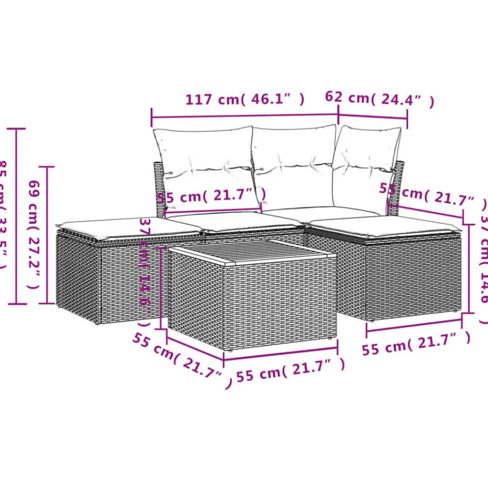 Deze loungeset is de perfecte aanvulling op je tuin of terras en biedt een comfortabele en uitnodigende ruimte om met familie en vrienden te kletsen of gewoon buiten te ontspannen en te genieten.