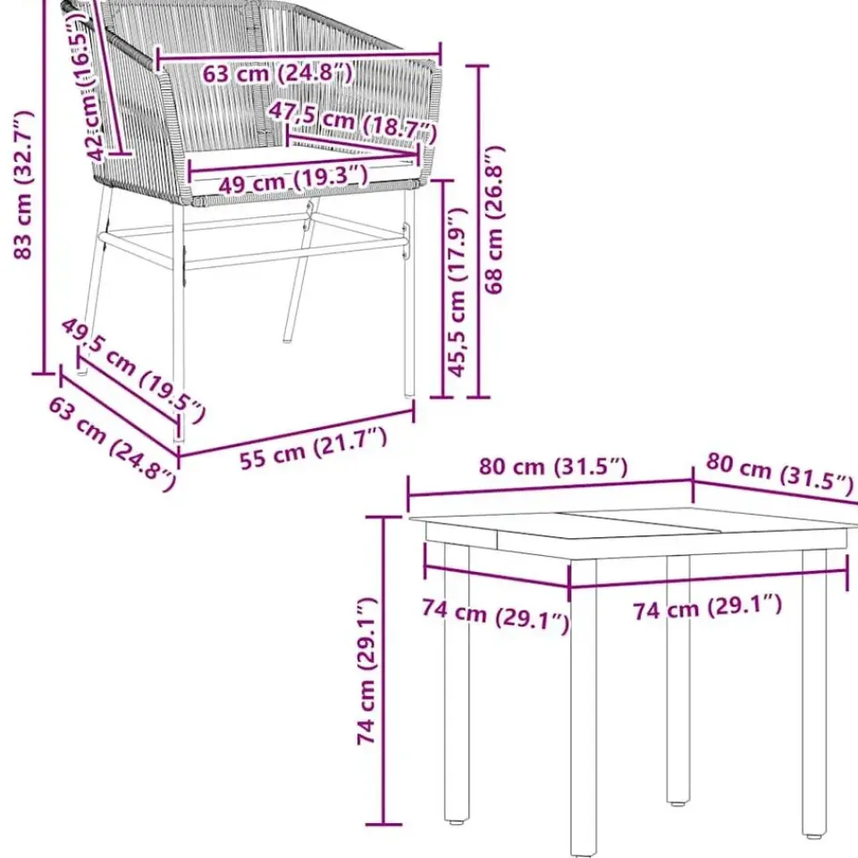 - Afmetingen: 80 x 80 x 74 cm (L x B x H)