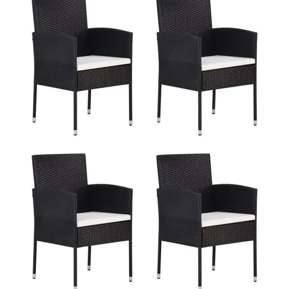 De eettafel en stoelen zijn gemaakt van onderhoudsvrij PE-rattan, waardoor ze gemakkelijk schoon te maken zijn met een vochtige doek en perfect zijn voor buitengebruik. Dankzij hun stalen frames zijn de tafel en stoelen zeer stabiel en stevig. Het glazen tafelblad geeft je buitenruimte een luxe tintje. Bovendien zijn de dikke, afneembare zitkussens zeer comfortabel.