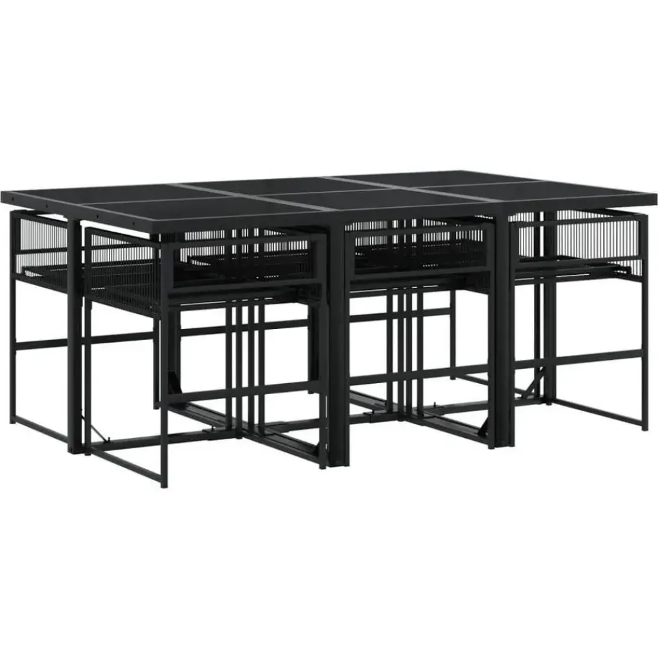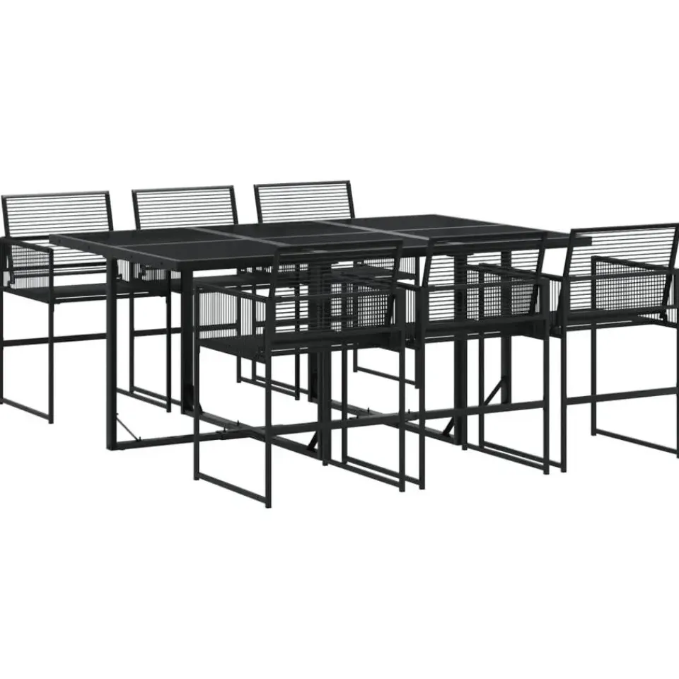 - Materiaal: PE-rattan, gepoedercoat staal en glas