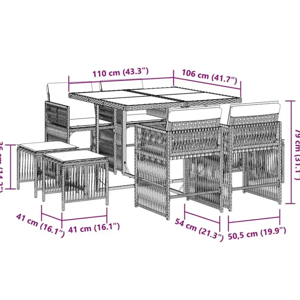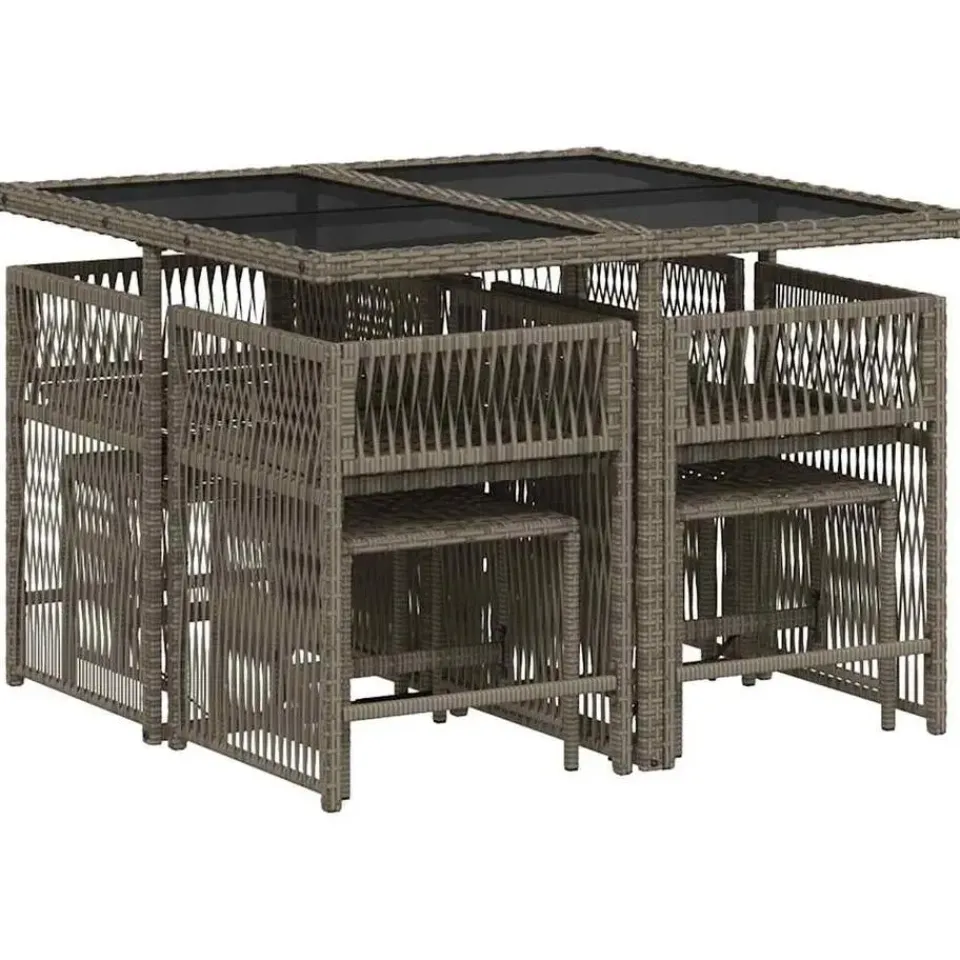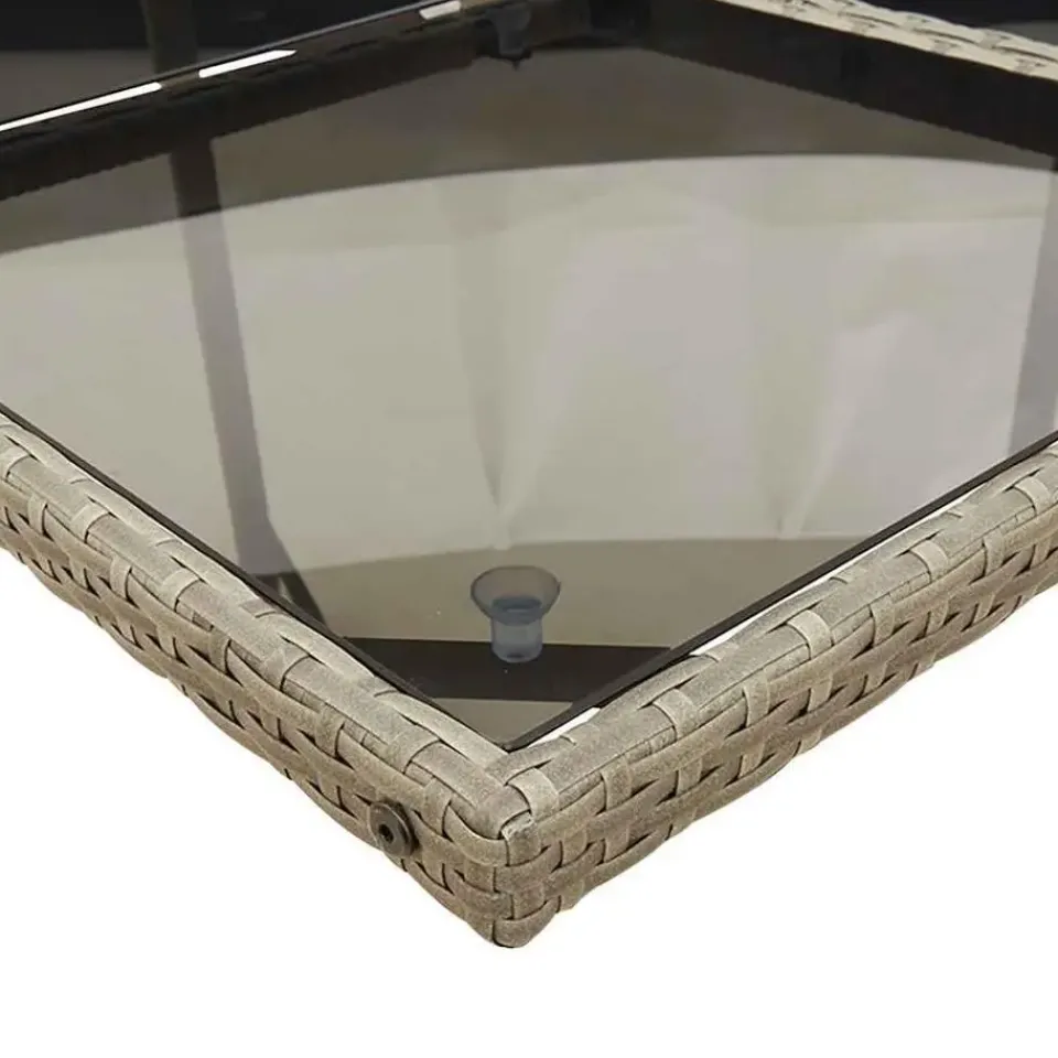 - Materiaal: PE-rattan, gepoedercoat staal en gehard glas