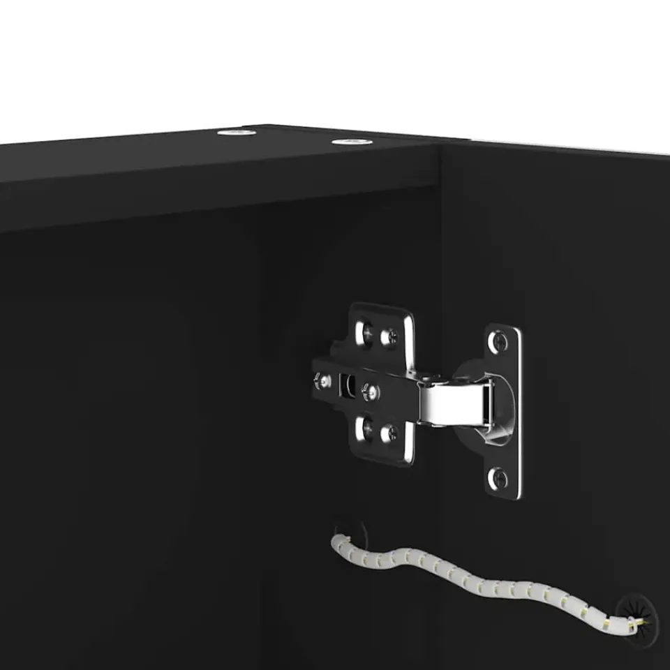 Het kastje is gemaakt van hoogwaardig MDF met melamine-afwerking, waardoor het zeer duurzaam is. Het kastje heeft een energiezuinige LED-lichtstrip waardoor er genoeg licht is om jezelf op te maken en je huid te verzorgen. Hij verlicht zowel de ruimte als jou. Je schakelt het licht eenvoudig in/uit met de onderste knop. Het kastje heeft verder 2 deuren en 3 schappen, voor extra opbergruimte in de badkamer. Ze bieden gemakkelijk plaats aan je essentiële toiletartikelen en badproducten, zoals zeep, shampoo, tandpasta, enz.