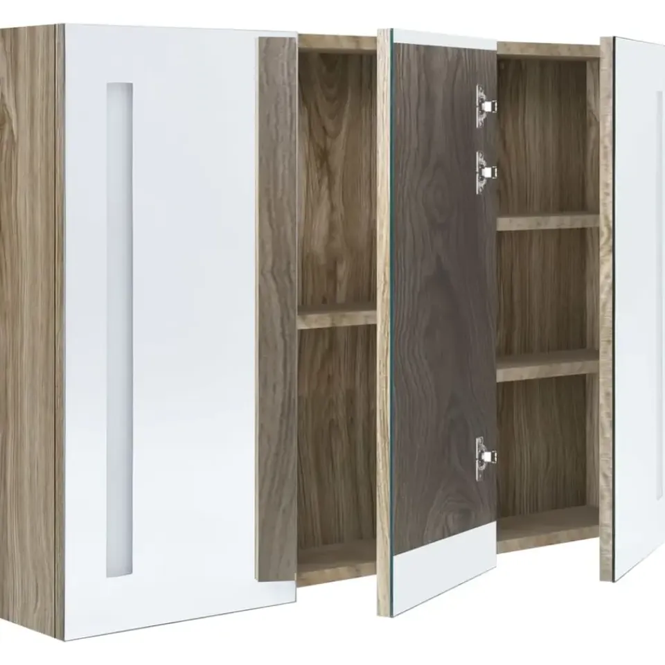 Het kastje is gemaakt van hoogwaardig MDF met melamine-afwerking waardoor hij zeer duurzaam is. Dankzij de energiezuinige LED-lichtstrips is er genoeg licht om jezelf op te maken en je huid te verzorgen. Ze verlichten zowel de ruimte als jou. Het kastje heeft 3 schappen die voldoende ruimte bieden voor al je toiletartikelen en schoonheidsaccessoires. Je kan het licht eenvoudig in-/uitschakelen met de knop aan de onderkant. Het kastje is trendy en functioneel, en is een blikvanger in elke ruimte!