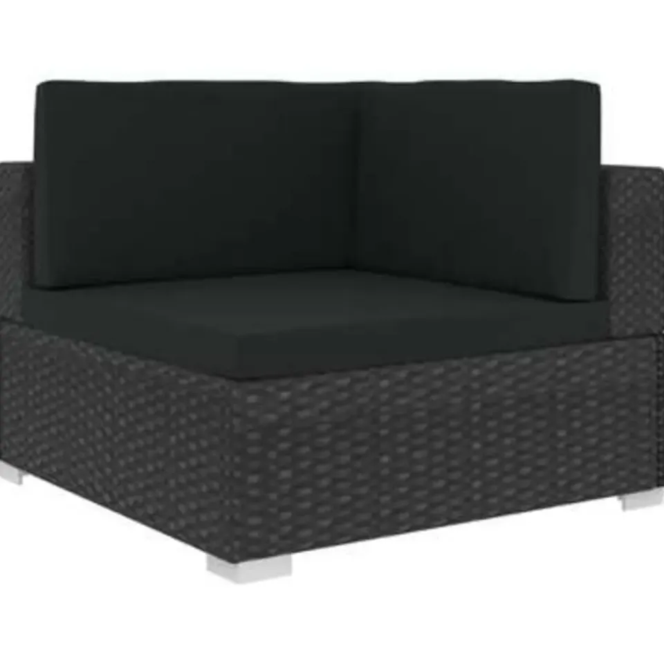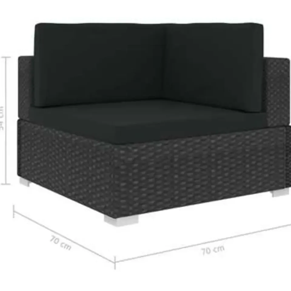 Deze poly rattan bankenset, bestaande uit 2 hoekbanken, 1 middenbank, 5 rugkussens en 3 zitkussens, is een stijlvolle zithoek voor je tuin of terras.