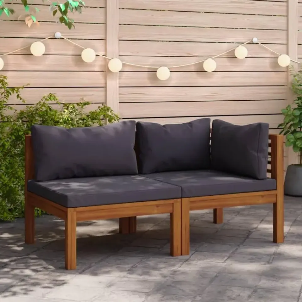 Deze bankenset is gemaakt van massief acaciahout, waardoor hij sterk, stevig en duurzaam is. De olieafwerking maakt de set geschikt voor buitengebruik. De gevoerde zit- en rugkussens bieden ultiem zitcomfort. Je kunt hem combineren met andere modulaire segmenten om je eigen persoonlijke loungeset samen te stellen!