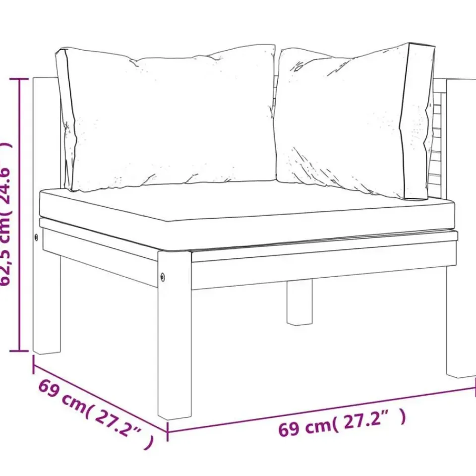 - Afmetingen hoekbank: 69 x 69 x 62,5 cm (B x D x H)