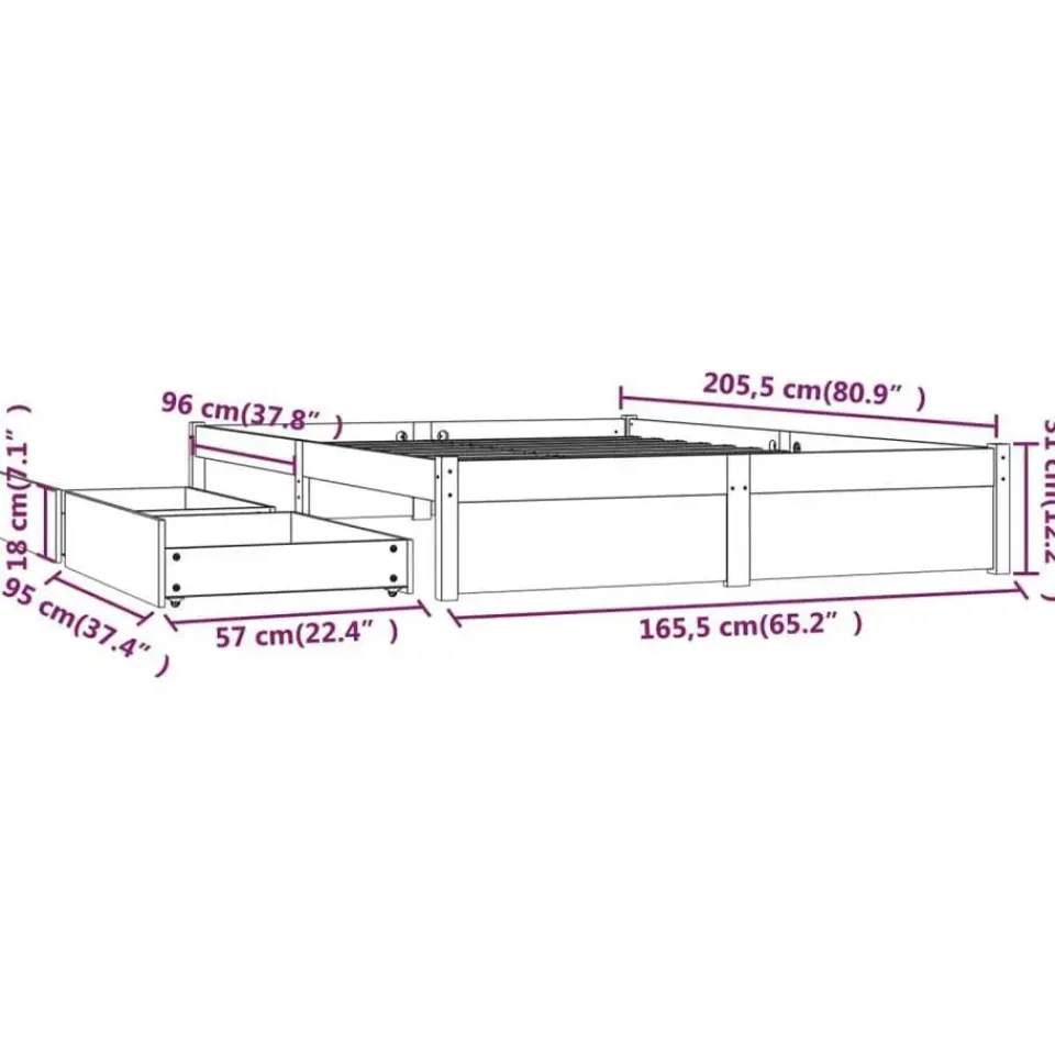 - Materiaal bedframe: massief grenenhout (onbehandeld)