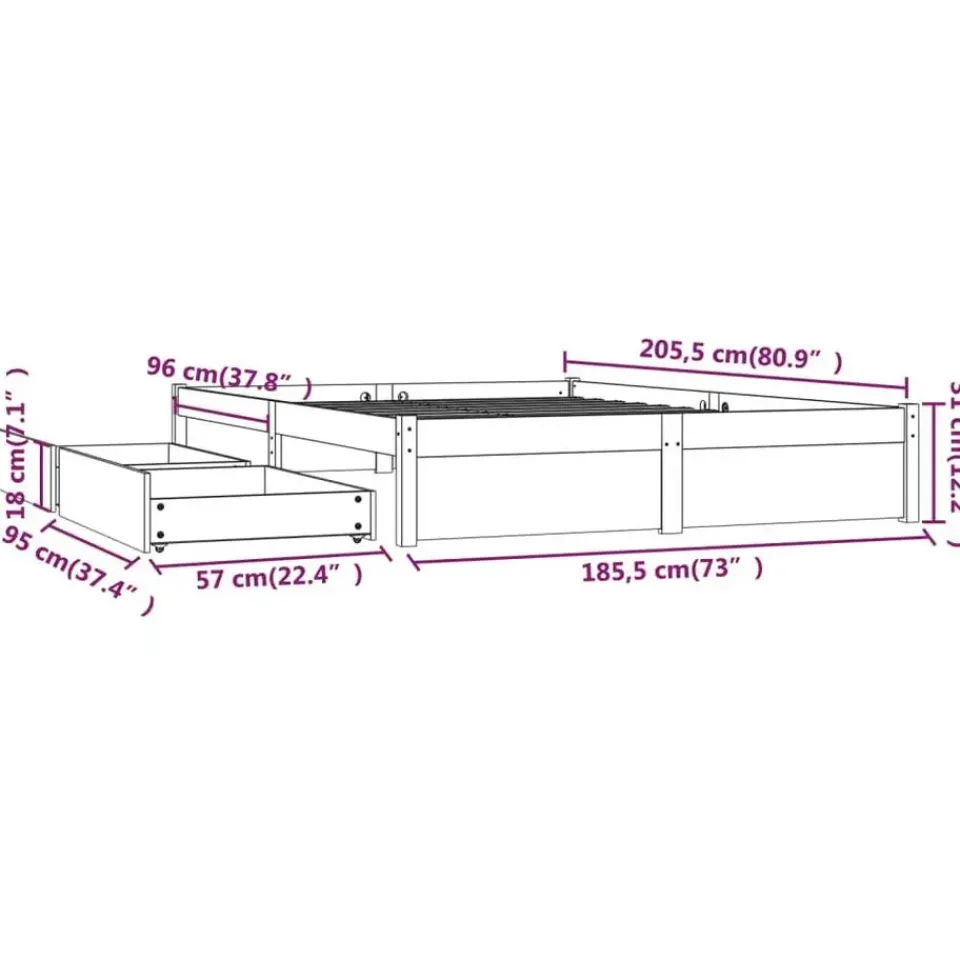 - Materiaal bedframe: massief grenenhout (onbehandeld)