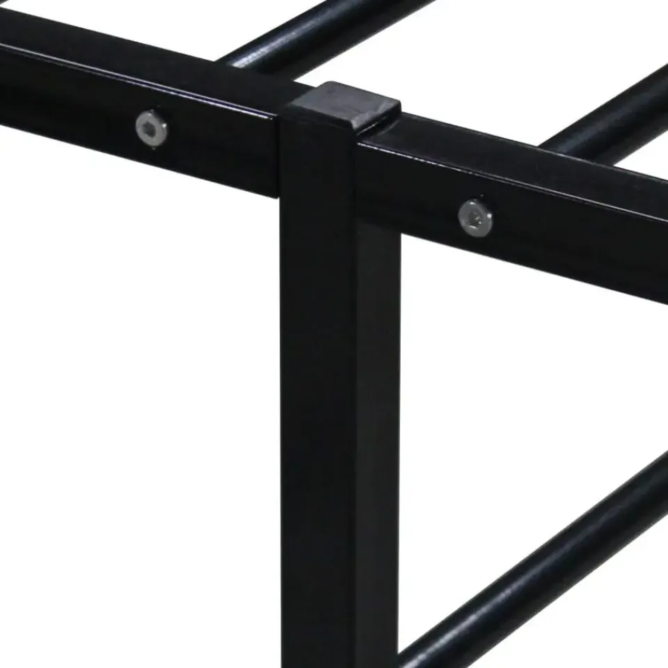 Dit bedframe heeft een massieve constructie van gepoedercoat metaal. De stevige lattenbodem biedt de nodige ondersteuning en is zeer comfortabel. Het trendy ontwerp draagt bij aan de moderne stijl van het bed. Met al deze gecombineerde kenmerken, heb je een goede nachtrust!