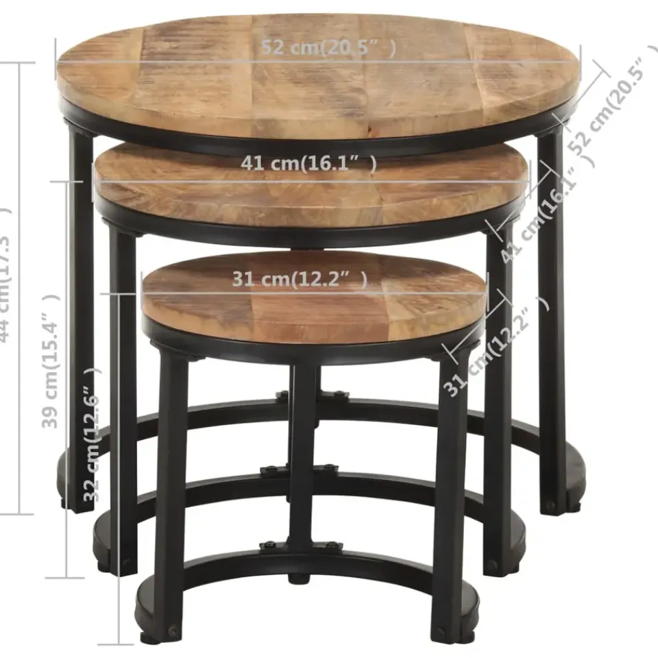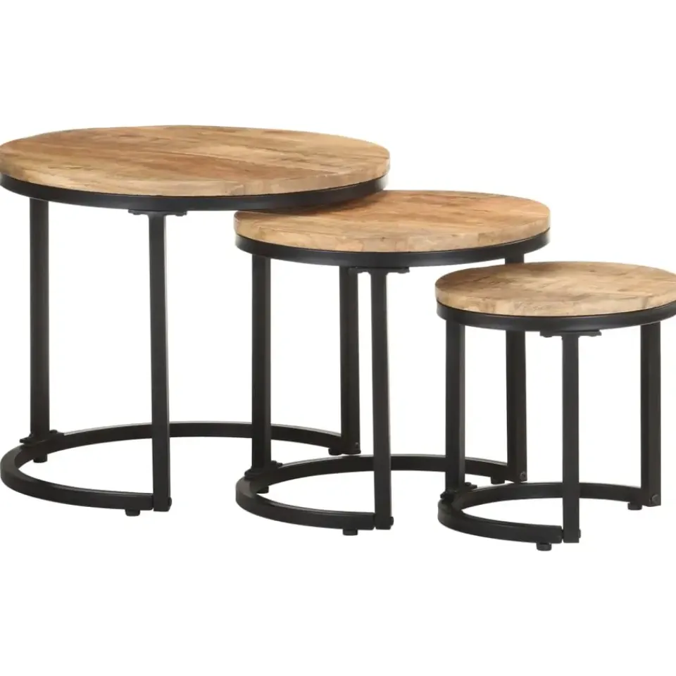 Deze tafelset is gemaakt van massief mangohout, een tropisch hardhout dat sterk en slijtagebestendig is. Het voortreffelijke vakmanschap en de prachtige houtnerven maken elk stuk net iets anders dan de rest. Daarnaast zorgt het massieve tafelblad voor een stabiel en veilig oppervlak waarop u uw verschillende benodigdheden kunt plaatsen. Het massieve tafelblad biedt een stabiel en stevig oppervlak waarop je verschillende spullen kunt plaatsen. De gepoedercoat ijzeren basis draagt bij aan de stevigheid en stabiliteit. Je kan de tafeltjes samen of apart gebruiken en in elkaar opbergen om ruimte te besparen.
