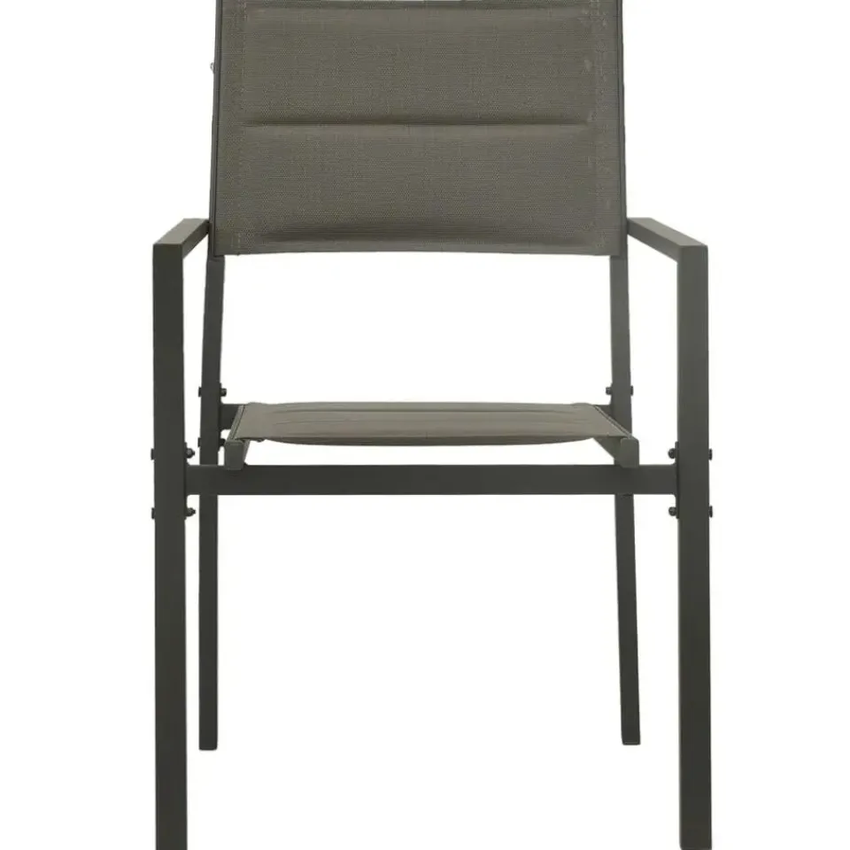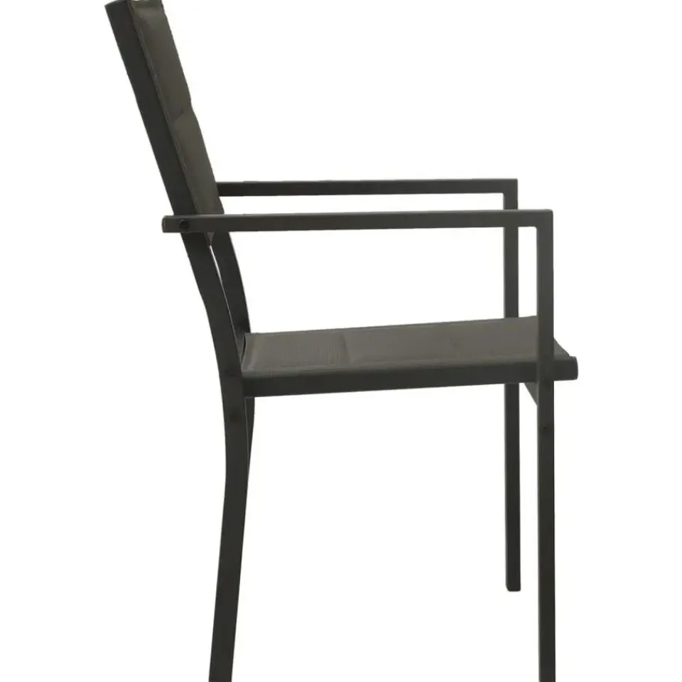Deze tuinset heeft een gepoedercoat stalen frame, waardoor de tafel en stoelen stabiel en duurzaam zijn. De comfortabele stoelen zijn bekleed met een sterke en makkelijk te reinigen textileen stof. De stoelen zijn stapelbaar om ruimte te besparen wanneer ze niet worden gebruikt.