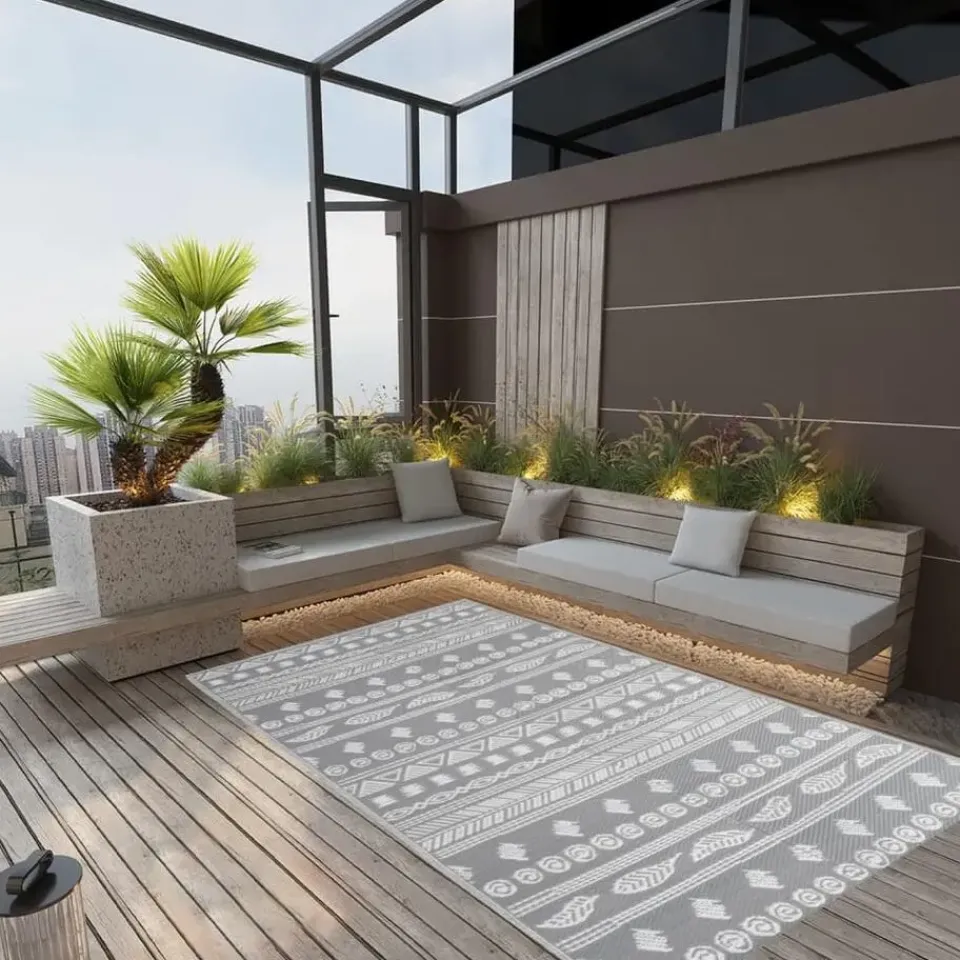 Het kleed is gemaakt van PP-materiaal, waardoor het zacht is en zelfs gebruikt kan worden om je zwembad gezelliger te maken! Bovendien heeft het een dubbellaags jacquard-patroon, waardoor het tuinkleed uniek en stijlvol is.