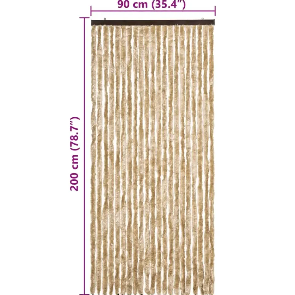 De strengen zijn gemaakt van polypropyleen chenille, wat ervoor zorgt dat het gordijn stil en veilig werkt en je er gemakkelijk doorheen kunt lopen.