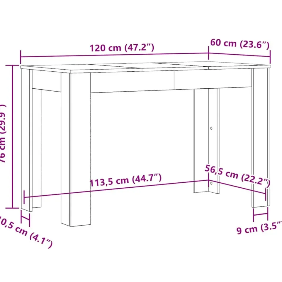 - Totale afmetingen: 120 x 60 x 76 cm (L x B x H)
