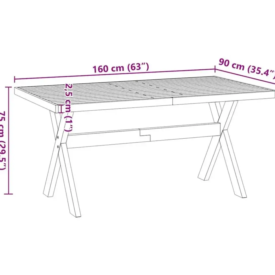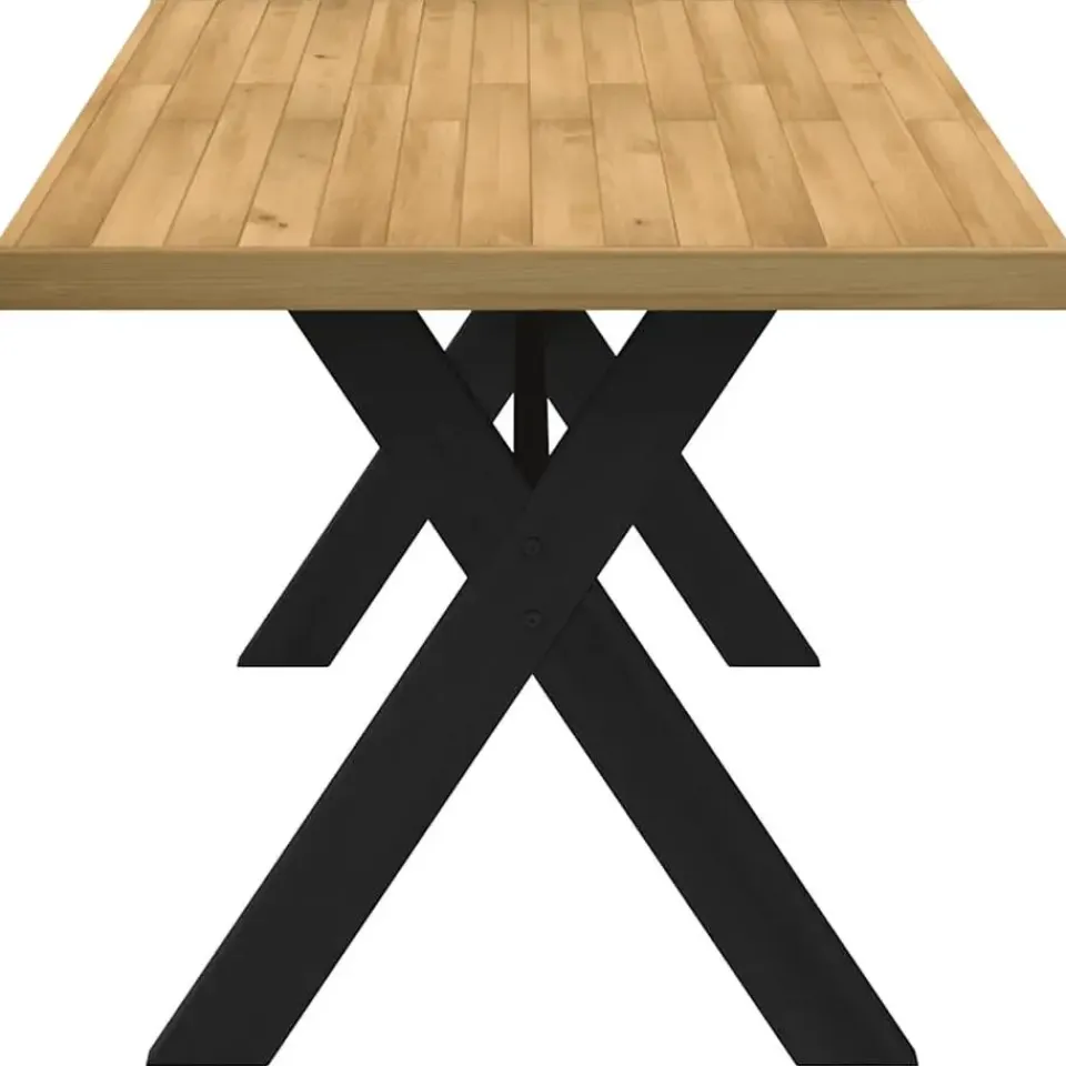 - Stevige tafelpoten: De houten X-vormige poten bieden niet alleen een rustieke esthetiek, maar bieden ook uitzonderlijke ondersteuning en stabiliteit aan de tafel.