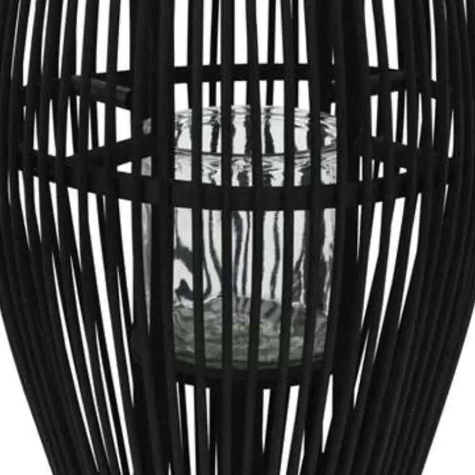 Deze hangende lantaarn is gemaakt van natuurlijk sterk bamboe en is geschikt voor buitengebruik. De binnenste glazen pot biedt een veilige en stabiele beschutting voor de kaars. Het ophangen is eenvoudig met het meegeleverde touw handvat, maar de houder is ook vrijstaand te gebruiken.