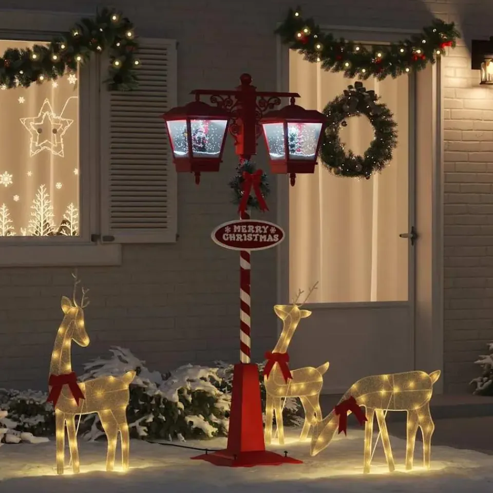 - Compleet pakket: De straatlamp bevat een gezellige lantaarn, een vrolijk ‘Vrolijk Kerstfeest’bord, een schattige Kerstman, een kleurrijke krans en versieringen met nep-sneeuw. Alles past perfect bij elkaar en versterkt de feestelijke sfeer.