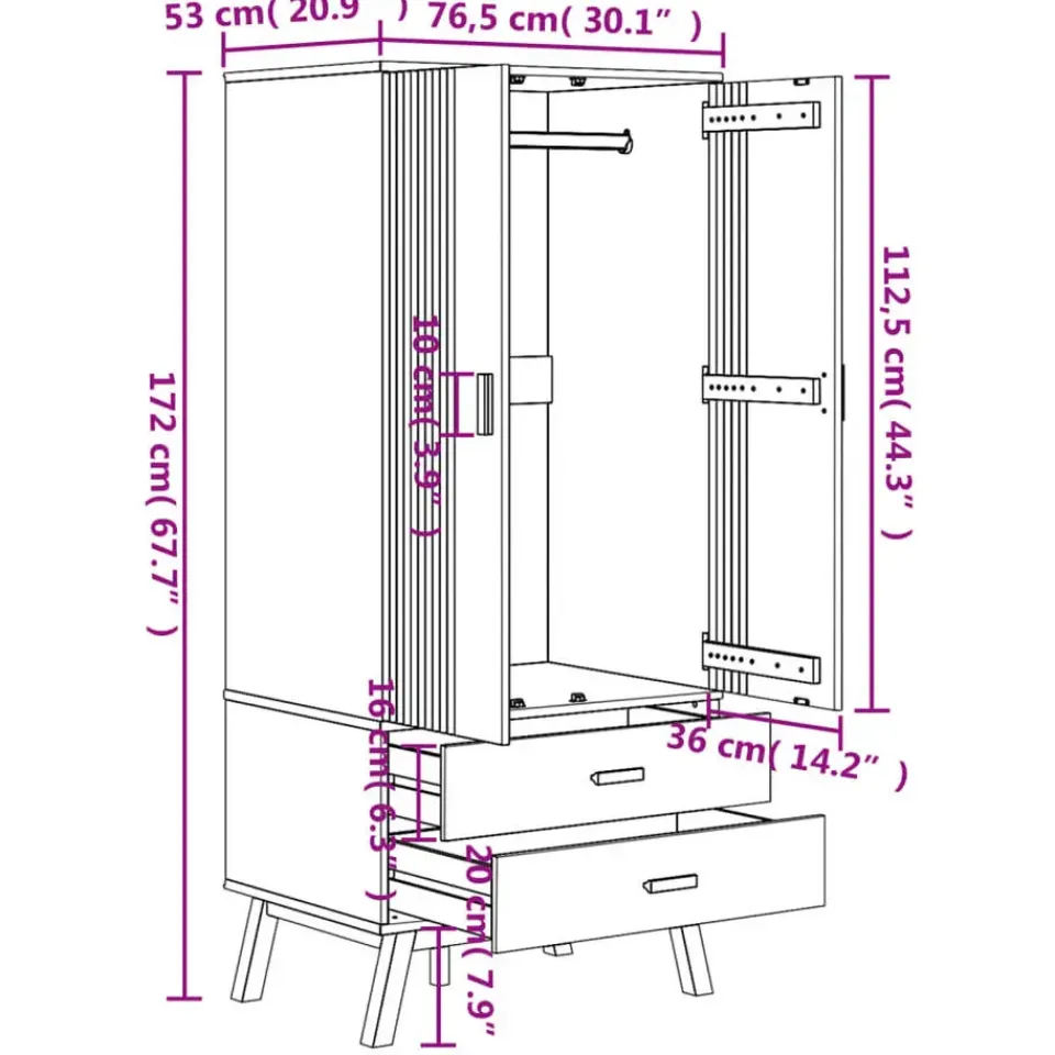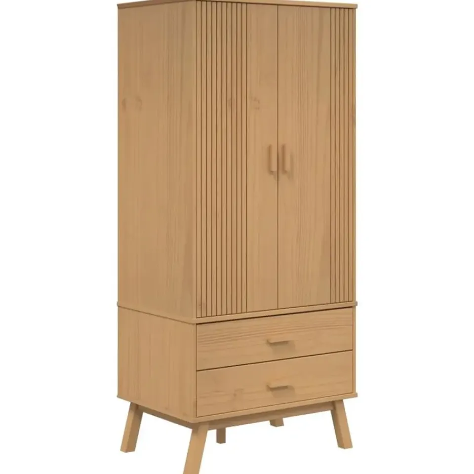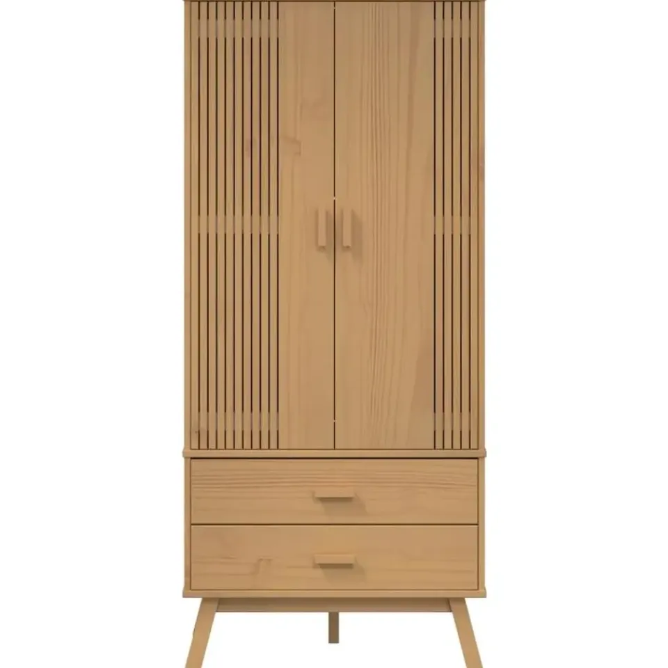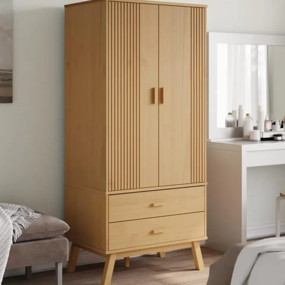 Deze klassieke houten kledingkast met Scandinavisch design biedt veel opbergruimte en houdt je kleding en accessoires netjes geordend.
