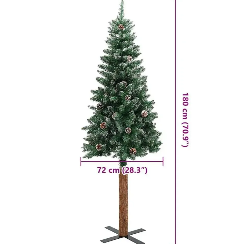 - Decoratief met dennenappels en ornamentballen, Realistische takkenpunten met bevroren sneeuw, Echte houten stam
