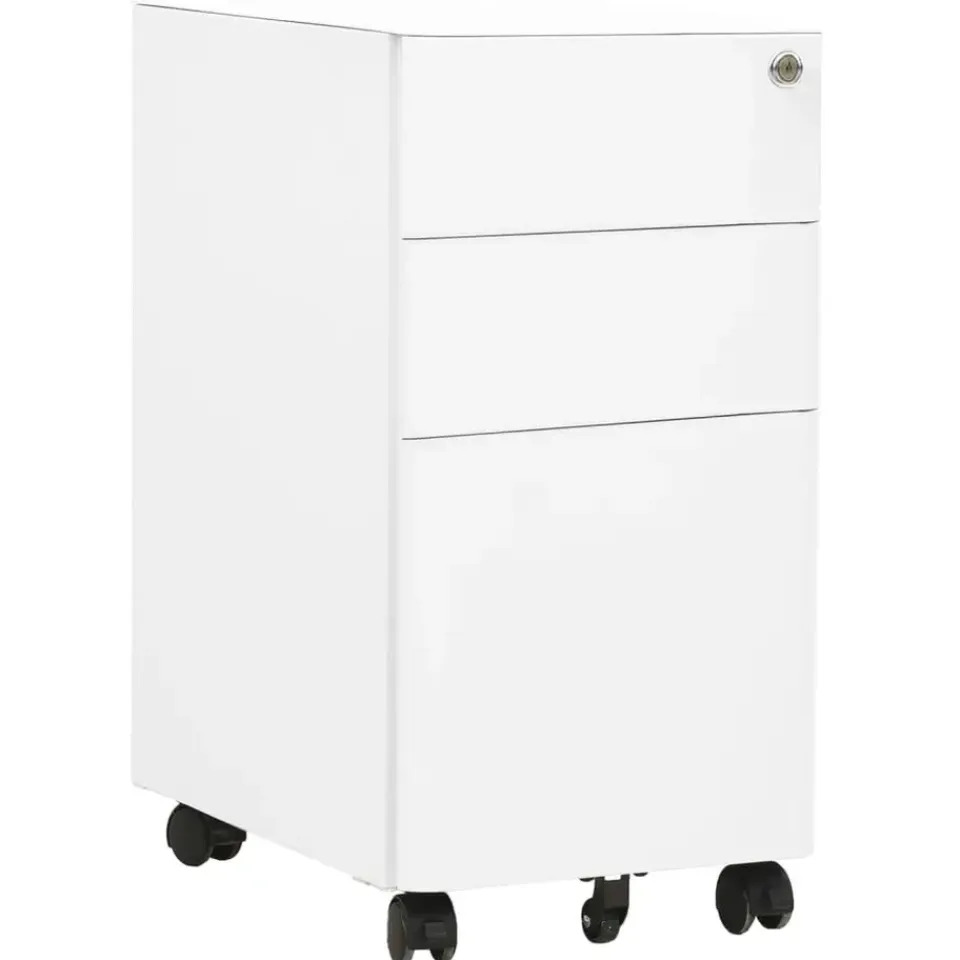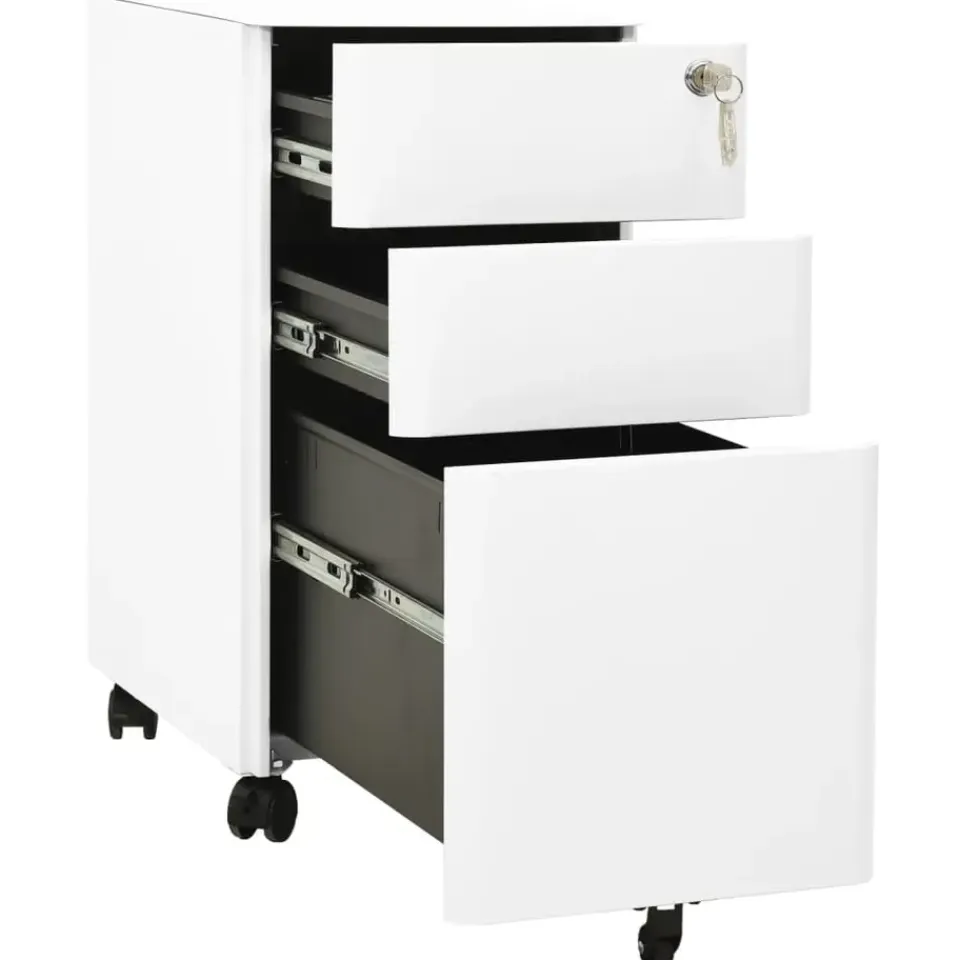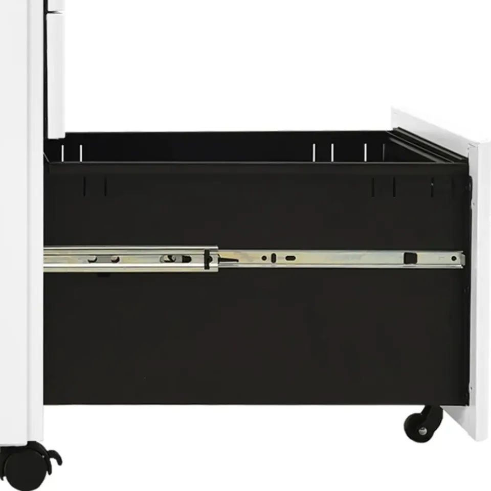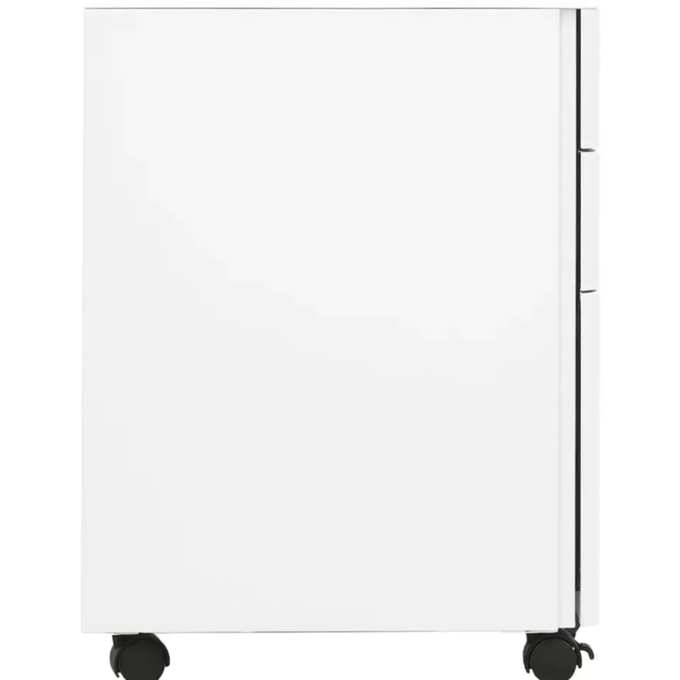 Deze ladekast is gemaakt van staal, waardoor hij zowel duurzaam als gemakkelijk schoon te maken is. Dankzij de 3 lades en het slot kan je dossiers netjes sorteren en veilig opbergen in deze archiefkast. Elke lade is tevens voorzien van 1 verwijderbare ophangstang, die geschikt is voor het opbergen van A4-hangmappen. Het verrijdbare kastje bevat ook een pennenbak, zodat je je bureaublad opgeruimd kunt houden. De 3-sectie kogelladegeleiders zorgen voor het soepel openen en sluiten van de lades. Zelfs bij een zwaardere belasting kunnen deze lades volledig worden uitgetrokken. De linker- en rechterhoeken van de kast zijn rond.