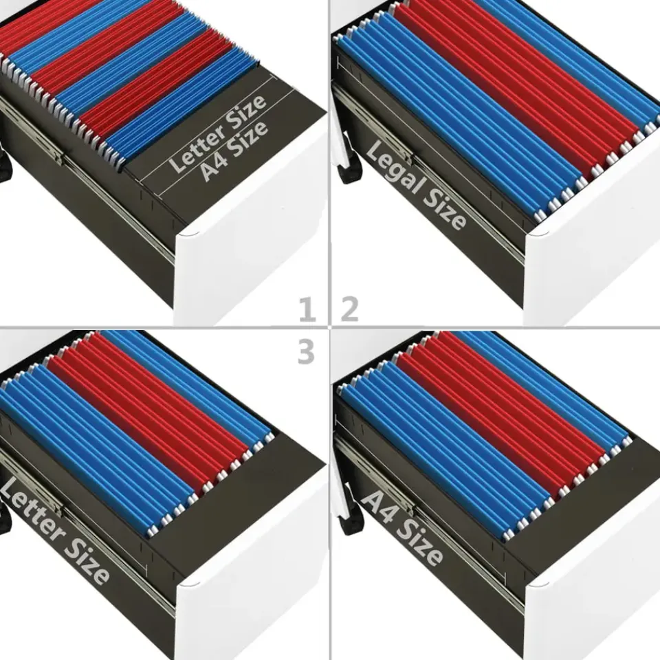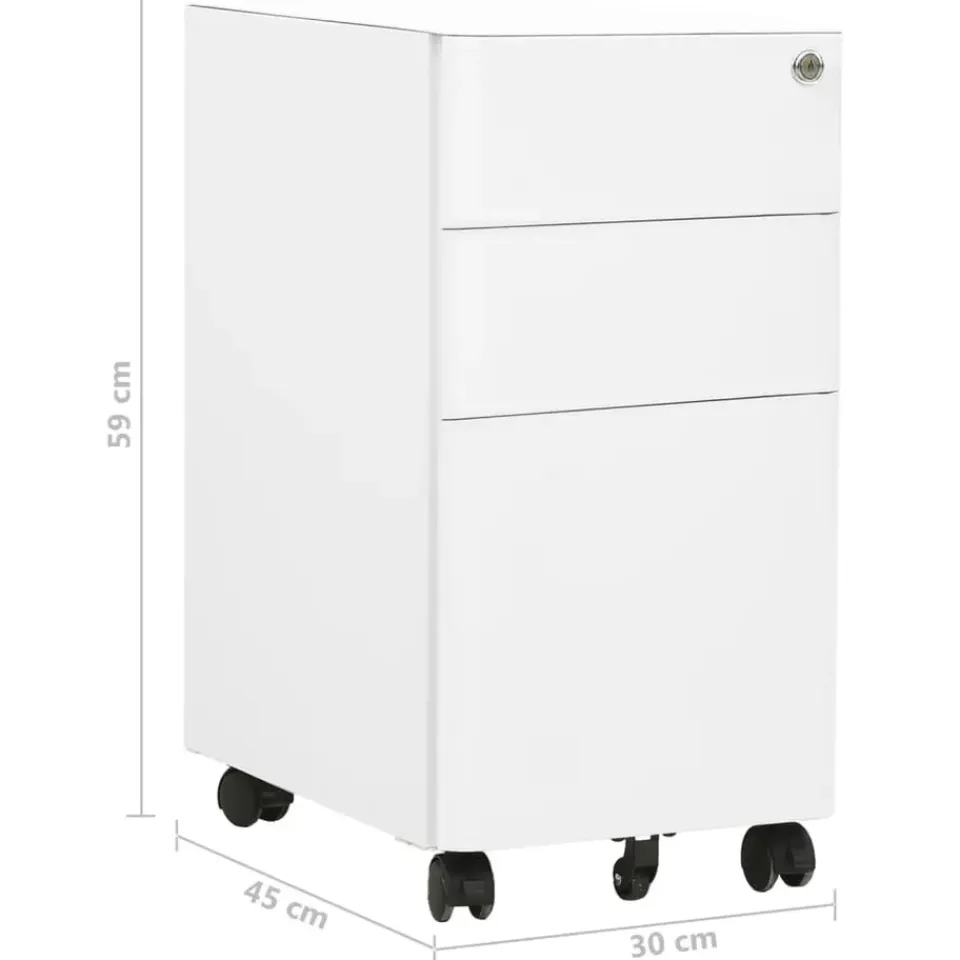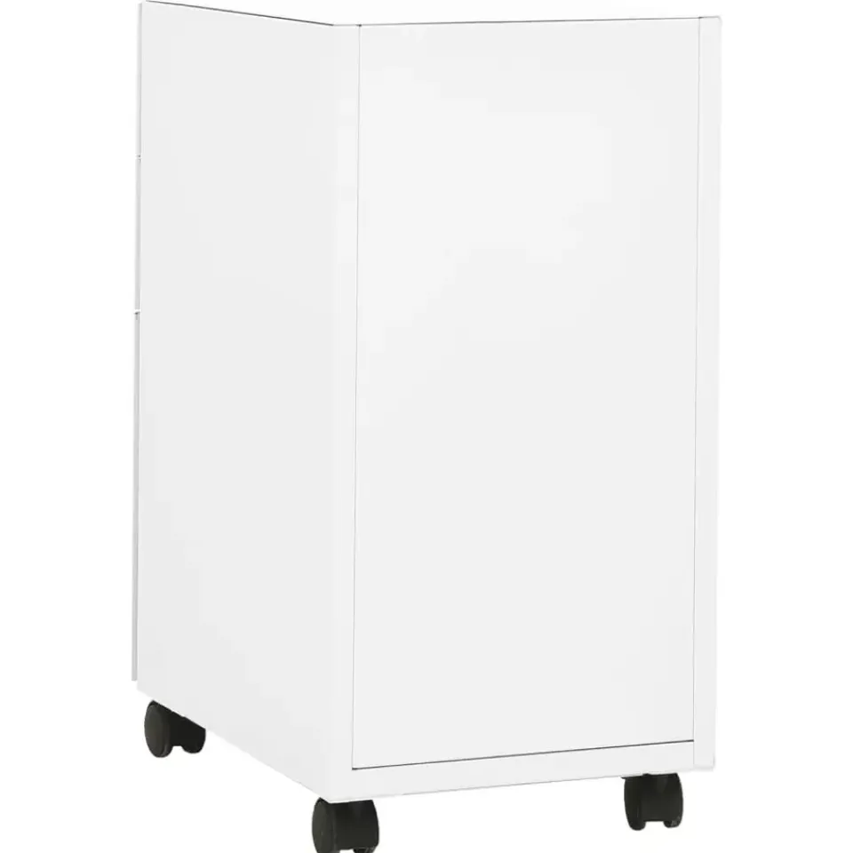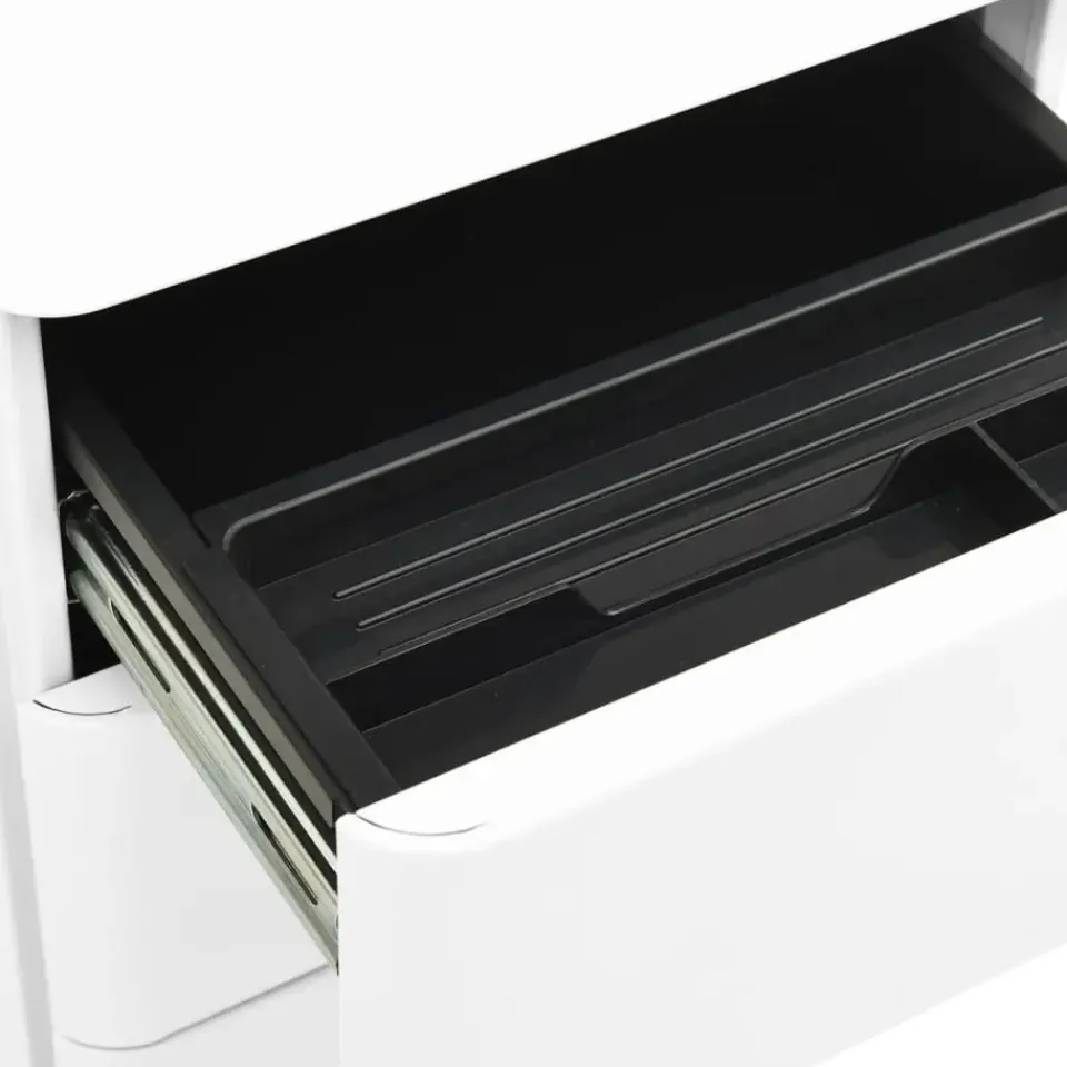 Deze ladekast is gemaakt van staal, waardoor hij zowel duurzaam als gemakkelijk schoon te maken is. Dankzij de 3 lades en het slot kan je dossiers netjes sorteren en veilig opbergen in deze archiefkast. Elke lade is tevens voorzien van 1 verwijderbare ophangstang, die geschikt is voor het opbergen van A4-hangmappen. Het verrijdbare kastje bevat ook een pennenbak, zodat je je bureaublad opgeruimd kunt houden. De 3-sectie kogelladegeleiders zorgen voor het soepel openen en sluiten van de lades. Zelfs bij een zwaardere belasting kunnen deze lades volledig worden uitgetrokken. De linker- en rechterhoeken van de kast zijn rond.