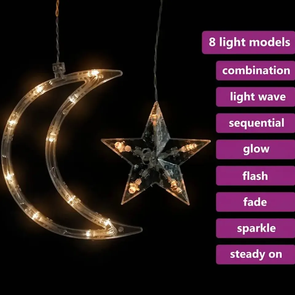 De lichtslinger met sterren en manen is de perfecte toevoeging aan elk decoratief project. De verlichting is geschikt voor Kerstmis, feestjes, bruiloften en andere feestdagen.