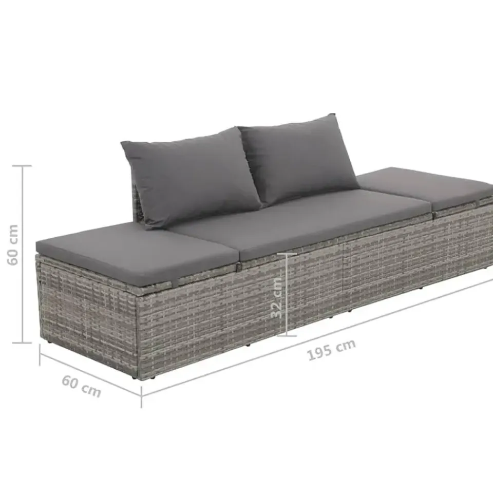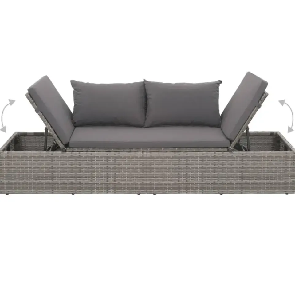 Ons zonnebed is gemaakt van PE-rattan, dat licht van gewicht, waterbestendig en gemakkelijk te reinigen is, en ontworpen is om het hele jaar door buiten gebruikt te worden. Het gepoedercoat stalen frame zorgt voor stabiliteit en een uitstekende duurzaamheid. Beide zijden van het bed kunnen omhoog worden getrokken en in verschillende standen worden ingesteld voor de meest comfortabele zit- of ligpositie. De dik gevoerde, afneembare kussentjes en kussens met schuimvulling bieden het ultieme comfort. De onderhoudsvrije polyester kussenhoezen kunnen eenvoudig verwijderd en gewassen worden. Het ligbed is eenvoudig te monteren. De levering bevat 1 loungebed, 1 groot zitkussen en 2 rugkussens.