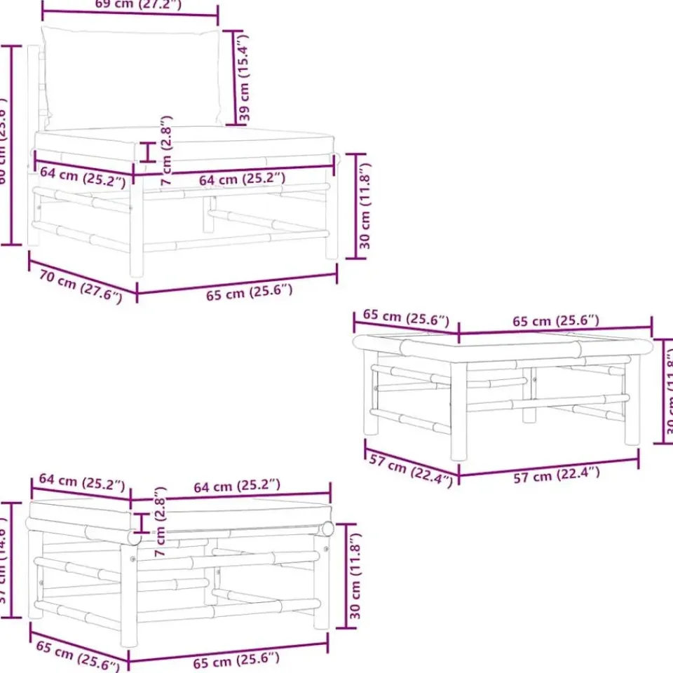 - Afmetingen middenbank: 65 x 70 x 60 cm (B x D x H)