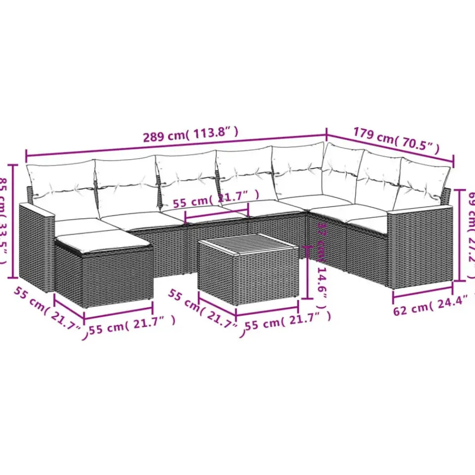 Deze loungeset is de perfecte aanvulling op je tuin of terras en biedt een comfortabele en uitnodigende ruimte om met familie en vrienden te kletsen of gewoon buiten te ontspannen en te genieten.