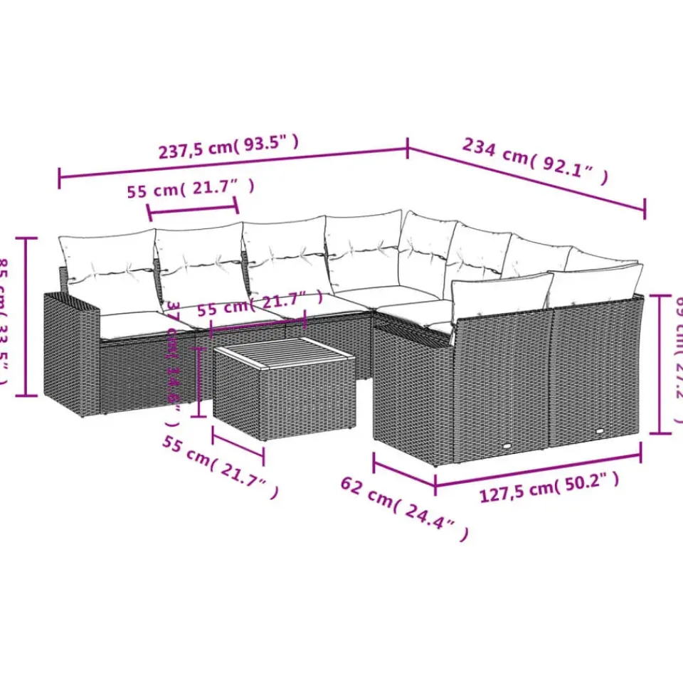 - Modulair ontwerp: deze tuinmeubelset heeft een modulair ontwerp, waardoor hij volledig flexibel en gemakkelijk te verplaatsen is. Op die manier kun je een opstelling van tuinmeubilair creëren.