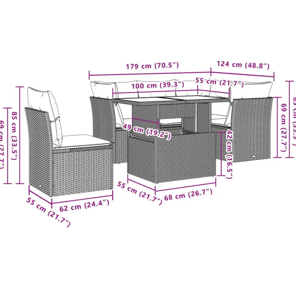 - Modulair ontwerp: deze tuinmeubelset heeft een modulair ontwerp, waardoor hij volledig flexibel en gemakkelijk te verplaatsen is. Op die manier kun je een opstelling van tuinmeubilair creëren.