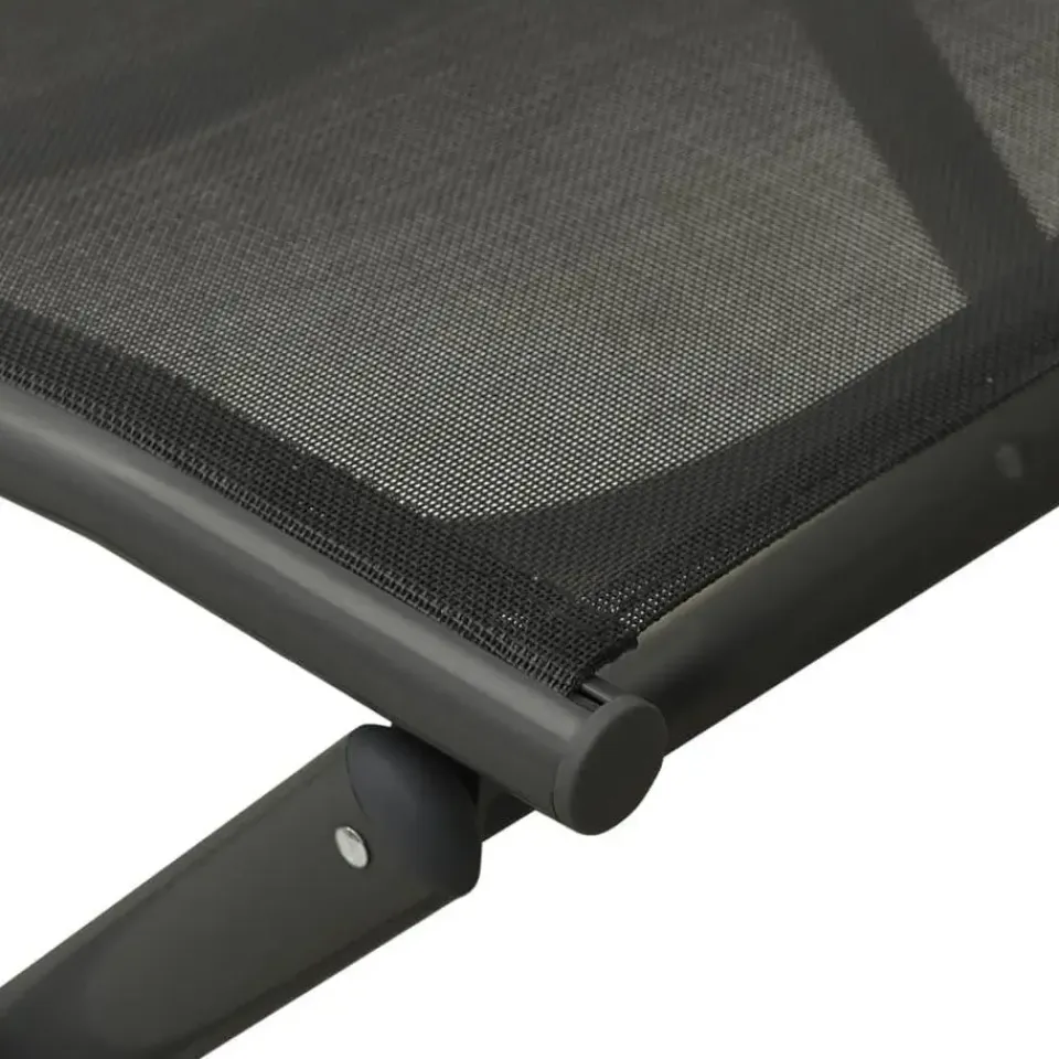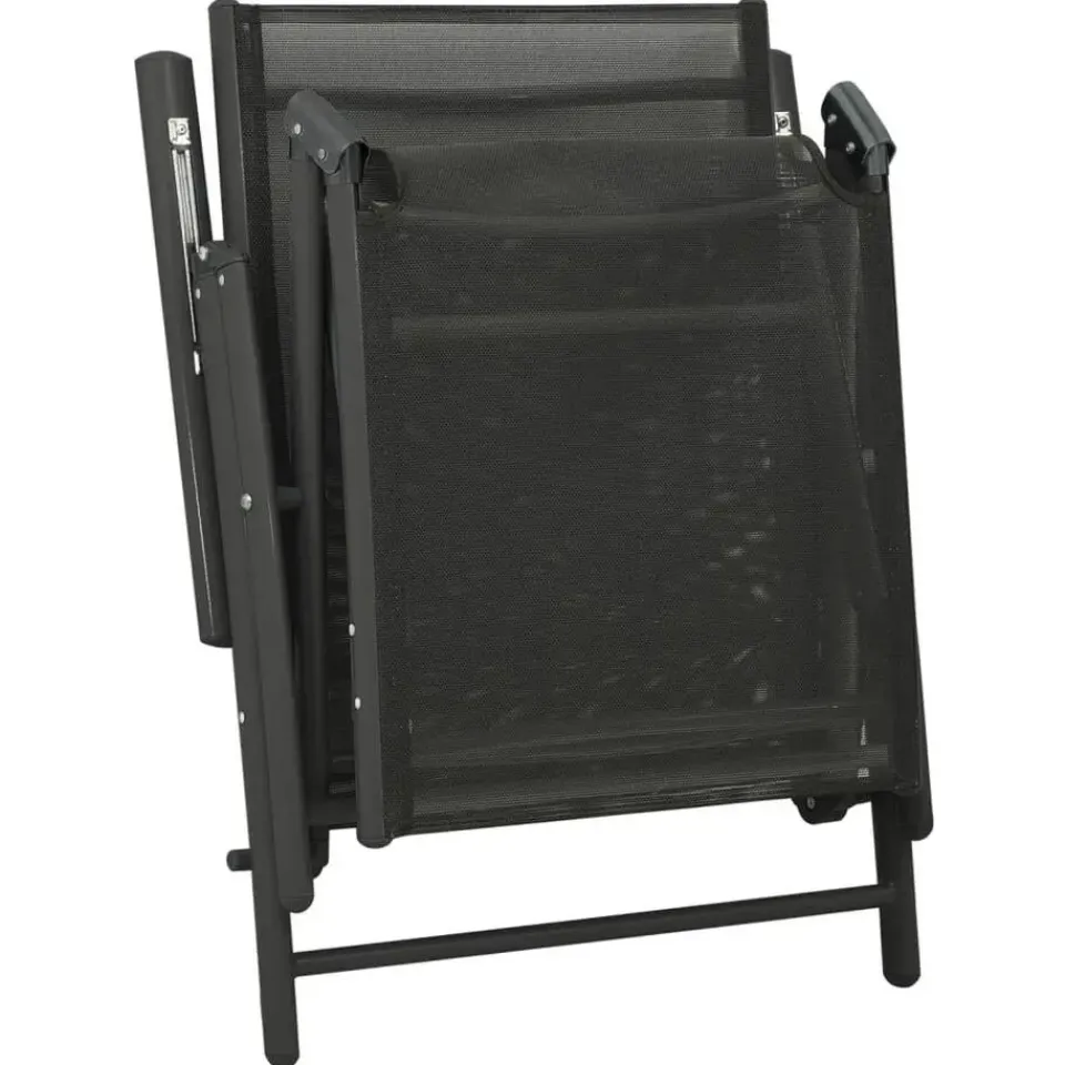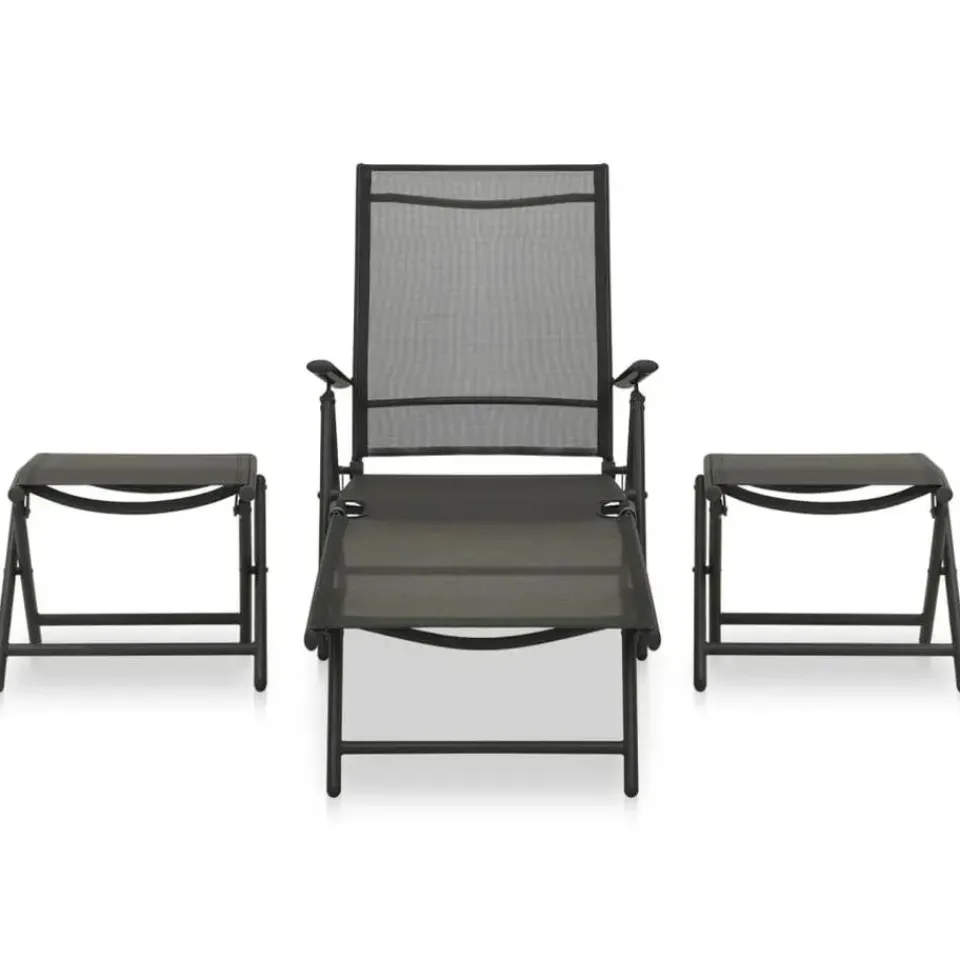 Het gepoedercoat aluminium frame maakt de set stevig en duurzaam. De armstoel heeft een verstelbare rugleuning, zodat je altijd de meest comfortabele houding kunt vinden. De zitting is comfortabel met ademend textileen. De voetensteunen dragen bij aan het comfort. Je kunt ze ook gebruiken als tafeltjes om drankjes en etenswaren binnen handbereik te plaatsen.