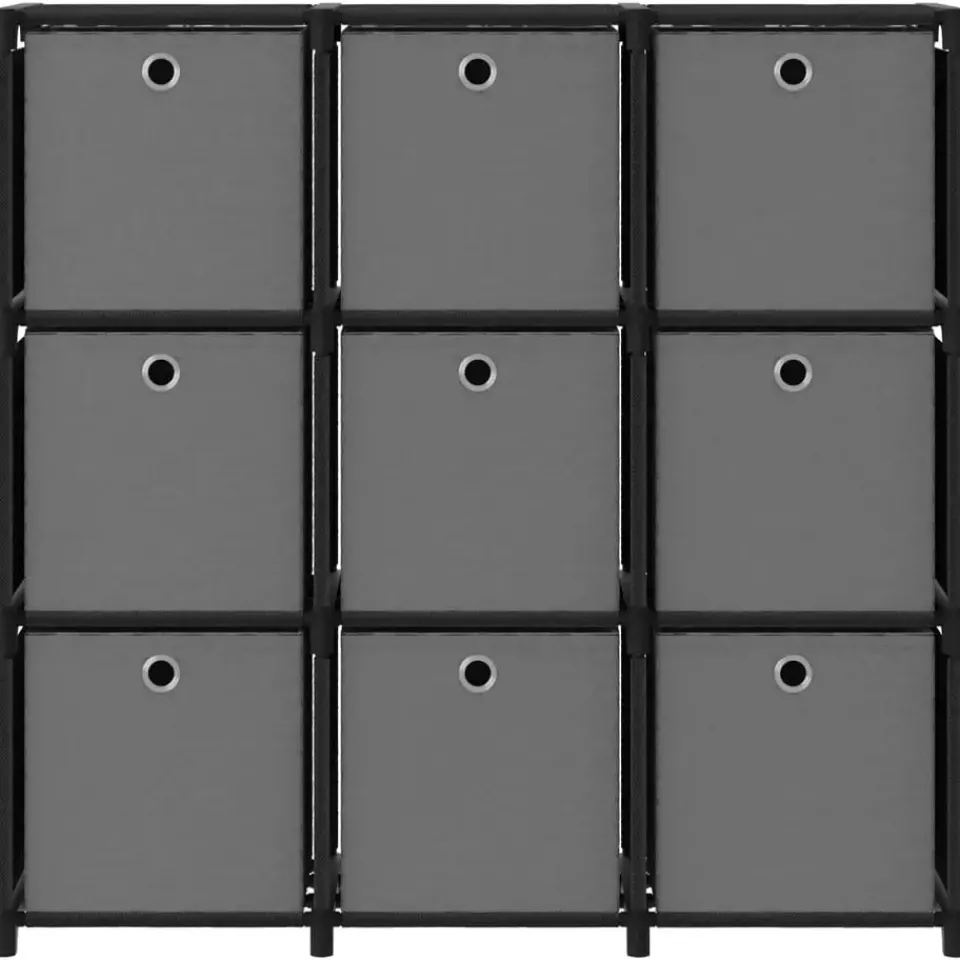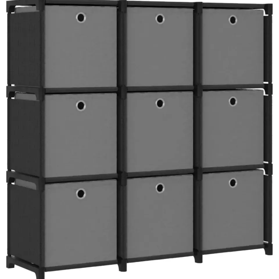 De kast is gemaakt van stof met een stalen frame, waardoor hij sterk en stabiel is. Deze vrijstaande kast heeft 9 open vakken en elk vak heeft een stoffen doos om je spullen en kamer netjes te houden. De dozen kunnen verwijderd worden zodat je boeken, verzamelobjecten, foto’s, onderscheidingen, kleine planten, enz. in de vakken kunt plaatsen.
