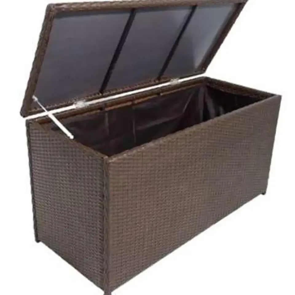 Deze opbergkist heeft een voering waardoor dit product een ideale opbergoplossing is voor de kussens van je tuinmeubilair en een heleboel andere spullen die je graag droog wil houden. Dankzij de weerbestendige PE-rattan is de opbergkist makkelijk schoon te maken, zeer robuust en geschikt voor dagelijks gebruik buiten.