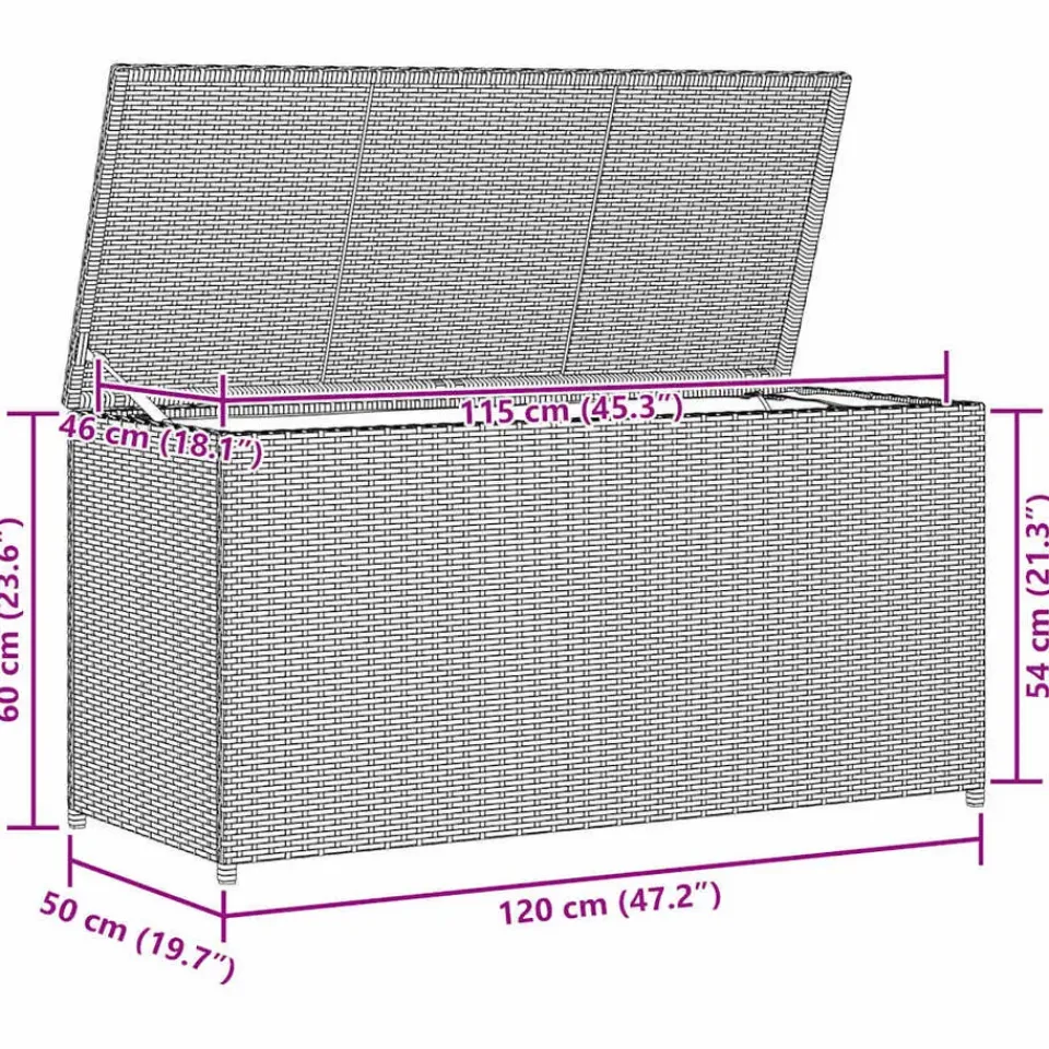 Deze tuinbox van PE-rattan is ideaal voor het opbergen van dekens, kussens, boeken en andere items die in de tuin of op het terras rondslingeren.
