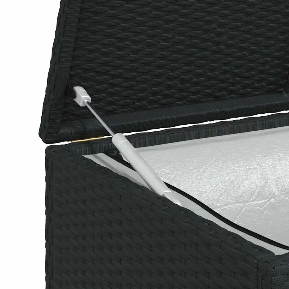 Deze opbergkist heeft een voering waardoor dit product een ideale opbergoplossing is voor de kussens van je tuinmeubilair en een heleboel andere spullen die je graag droog wil houden. Dankzij de weerbestendige PE-rattan is de opbergkist makkelijk schoon te maken, zeer robuust en geschikt voor dagelijks gebruik buiten.