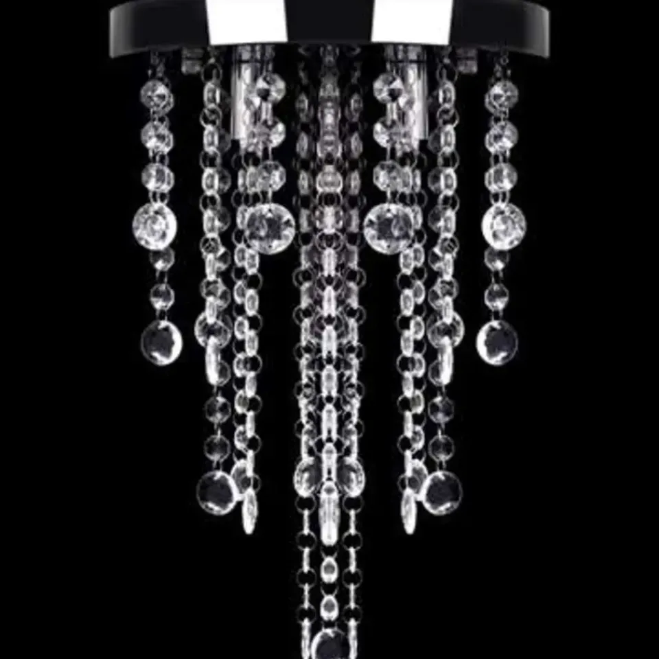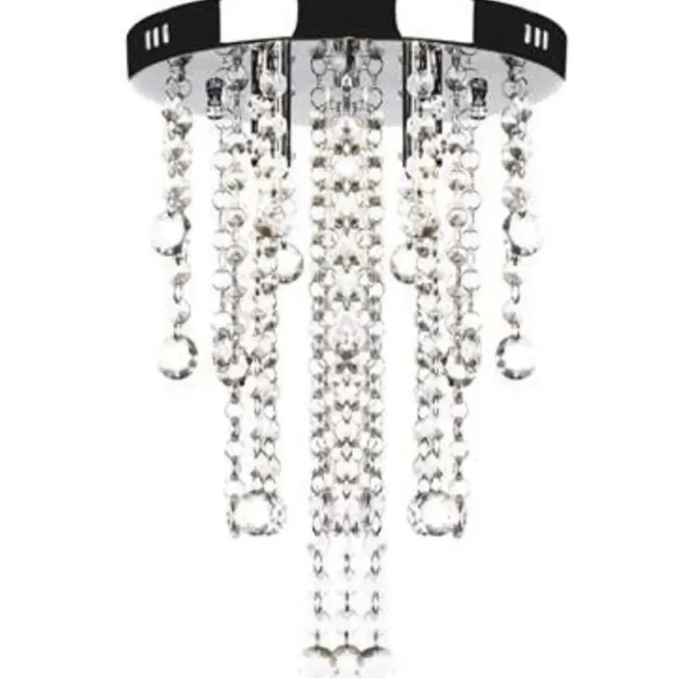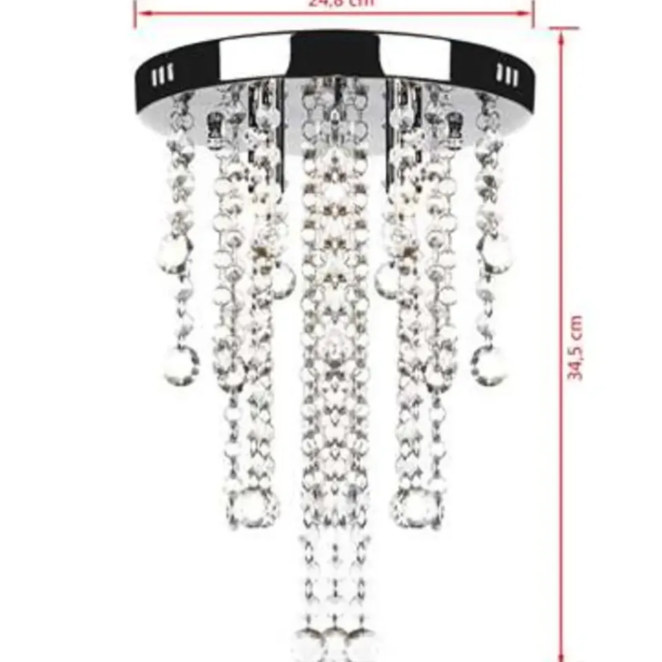 Dit is een plafondlamp met kristallen versieringen. Hij is ideaal voor zowel particulier als commercieel gebruik.