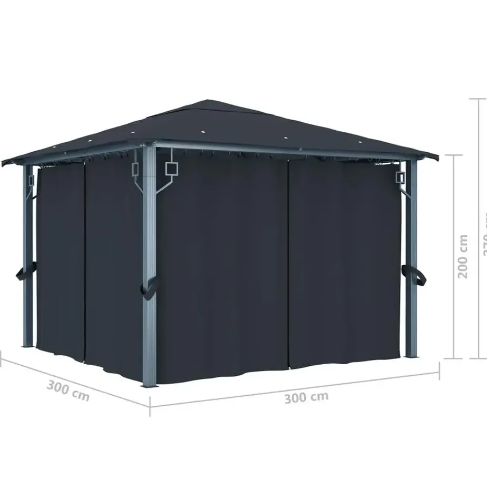 vidaXL Prieel met gordijn 300×300 cm aluminium antraciet Discount