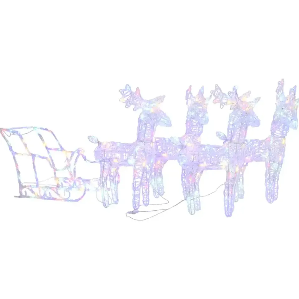 Verfraai je tuin of huis met deze unieke versiering. Deze 4 rendieren en slee brengen in combinatie met kleurrijke lampjes de ware kerstsfeer naar voren!