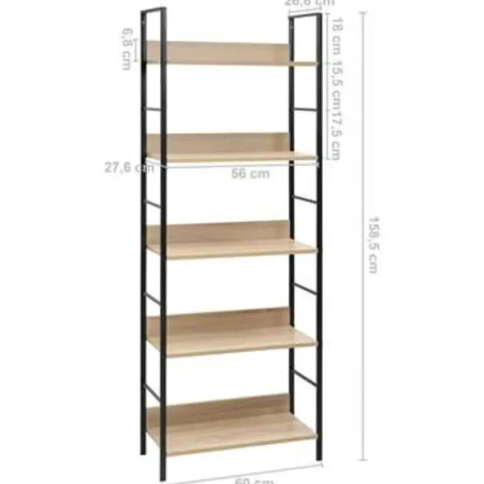 Het meubel is gemaakt van bewerkt hout, waardoor het gemakkelijk schoon te maken is met een vochtige doek De robuuste stalen structuur maakt de kast roestbestendig en draagt bij aan de industriële stijl. Het opbergrek heeft een compact ontwerp, waardoor het optimaal gebruik maakt van beperkte ruimte. Het heeft 5 lagen, waardoor je voldoende ruimte hebt voor het opbergen en plaatsen van je boekencollectie, bloemen, cd’s, dvd’s en andere decoratieve spullen.
