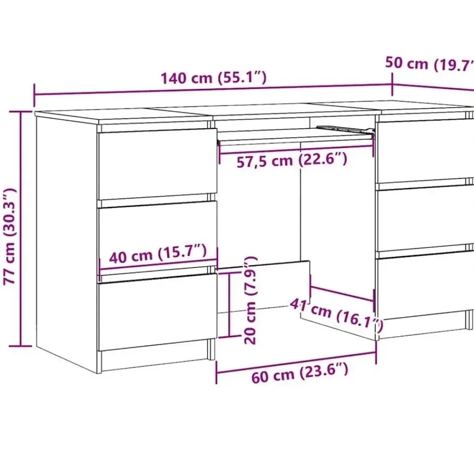 Dit computerbureau is gemaakt van hoogwaardig bewerkt hout, waardoor het stevig en duurzaam is. Ons bureau is perfect voor kleinere kantoren, slaapzalen, kleine ruimtes, enz. Daarnaast heeft het bureau 6 lades die voldoende opbergruimte bieden aan je boeken en documenten.