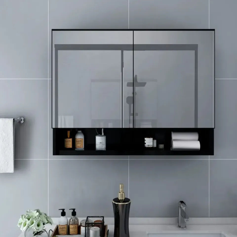 De kast is gemaakt van hoogwaardig MDF-plaat met een oppervlak van melamine, waardoor langdurig gebruik is gegarandeerd. Met de knop zet je de lamp eenvoudig aan/uit. Met een energiezuinige LED-strip zie je jezelf in het meest ware licht voor het aanbrengen van make-up, verzorging en huidverzorging. De 2 deuren en 3 schappen binnenin de kast bieden voldoende opbergruimte. Ze zijn ideaal voor het opbergen van je toiletartikelen en badspullen, zoals zeep, shampoo en tandpasta, enz. In het midden van de kast zit een verplaatsbaar tussenschot. Je kunt hem installeren volgens je eigen wensen. Bovendien is hij gemakkelijk schoon te maken met een vochtige doek.