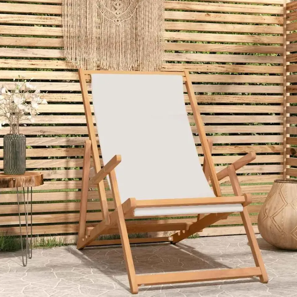- Materiaal: fijn geschuurd hard teakhout met waterbasisafwerking en stof (100% polyester)