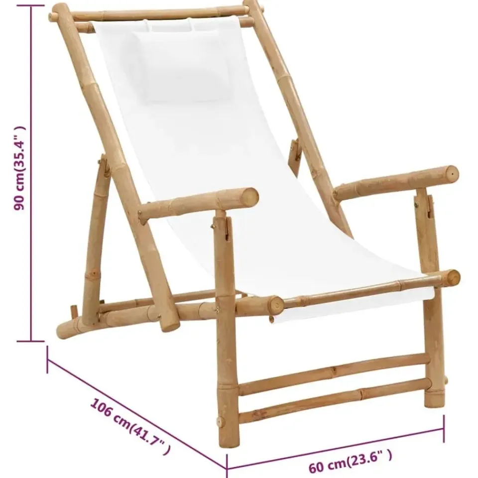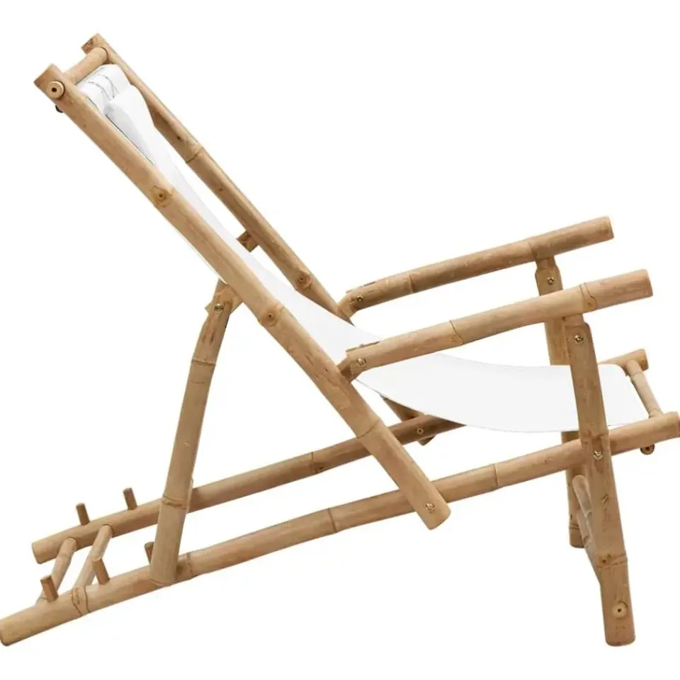- Stabiel frame: het stoelframe is gemaakt van duurzaam gewonnen bamboe, wat zeer duurzaam is. Het materiaal verandert na verloop van tijd niet van kleur en voorkomt dat de strandstoel scheurt of vervormt.