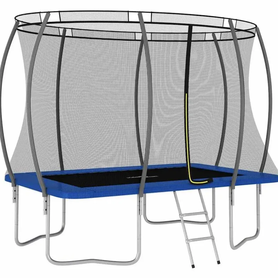Beleef veel plezier en spring lekker op onze rechthoekige trampoline! Onze trampolineset wordt geleverd met veiligheidsnet, toegangsladder en regenhoes.