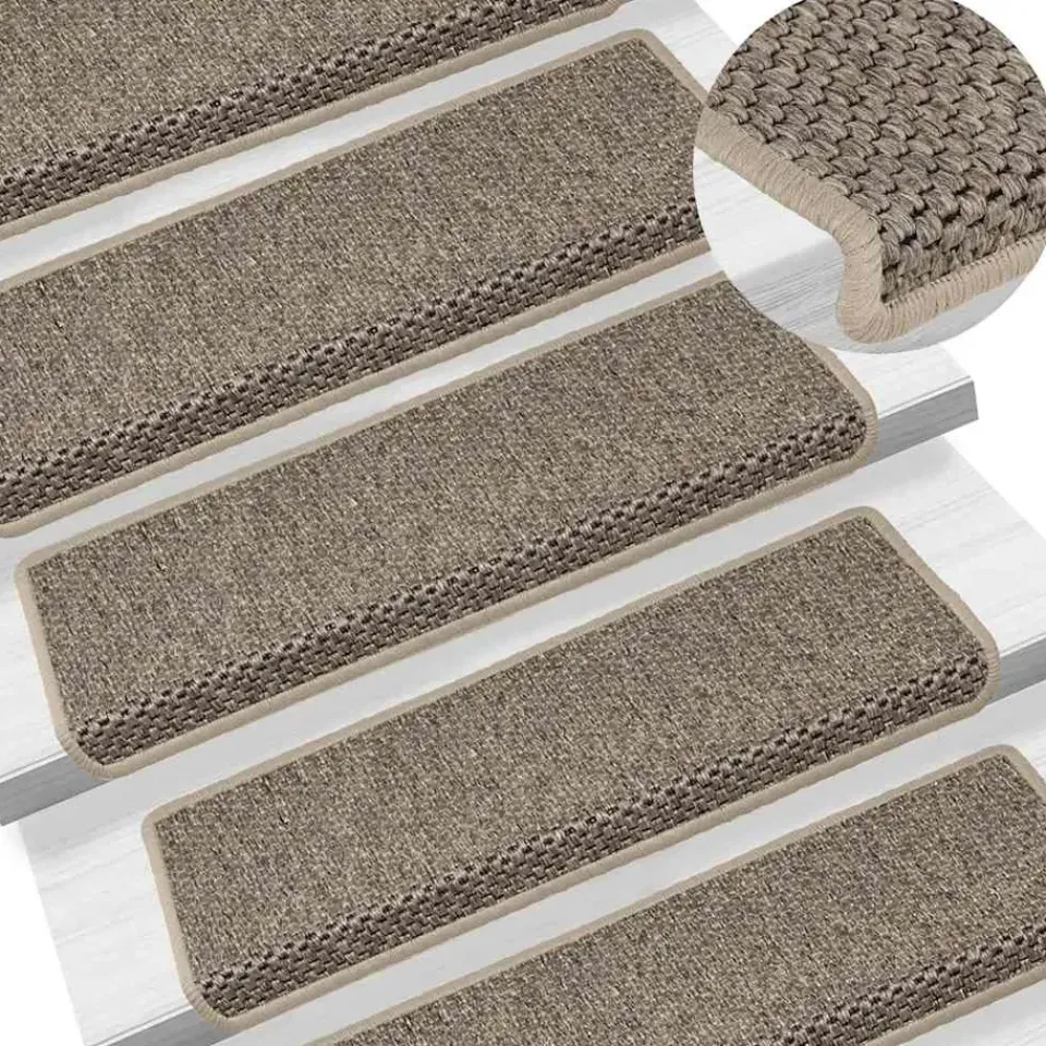 Deze matten zijn gemaakt van sterke stof in sisal-stijl, ze zijn daardoor geluiddempend, anti-slip, warm en comfortabel. Deze trapmatten zijn wasbaar en beschermen zowel de bovenkant als de voorkant van de traptredes. De kleefstrips op de achterzijden zorgen ervoor dat de matten snel en makkelijk aan de trap kunnen worden geplakt.